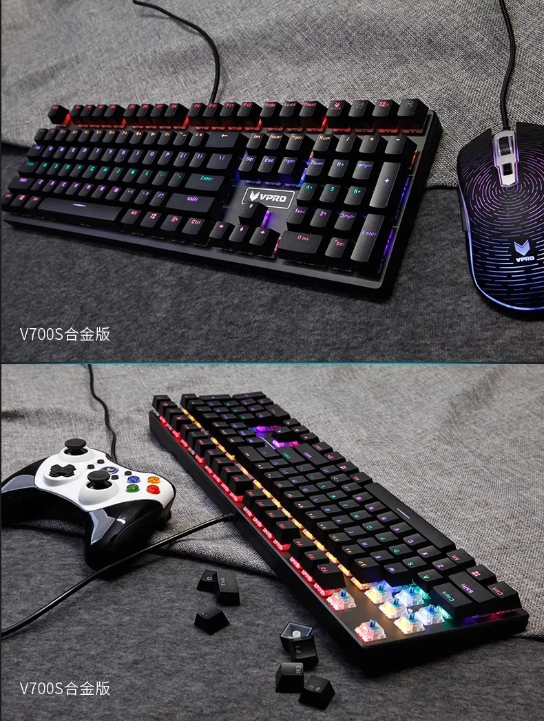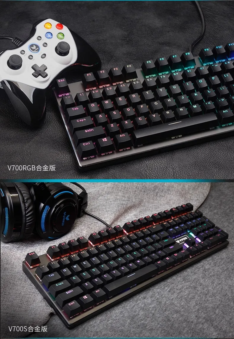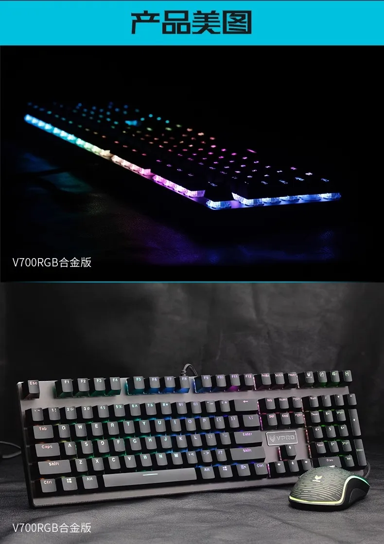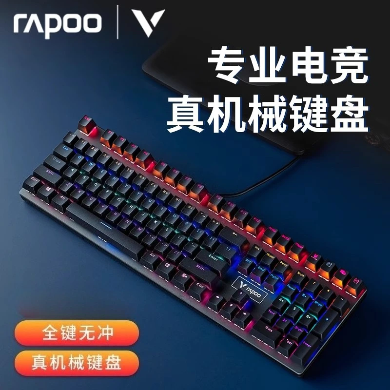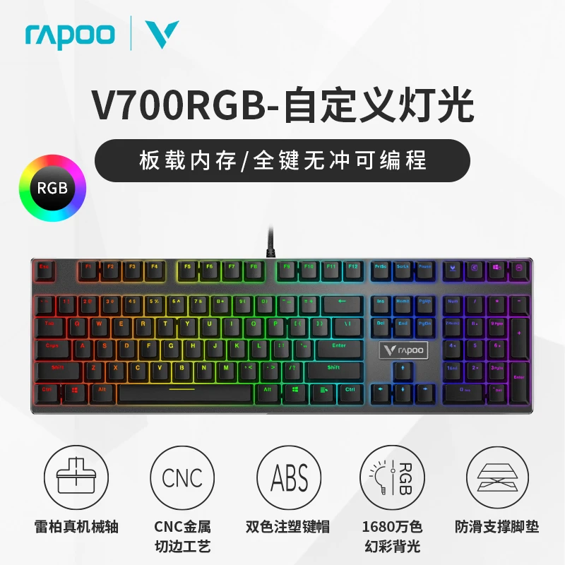 Comprar Rapoo-Teclado mecánico con cable V700 RGB, tecla completa de Metal CNC, sin perforaciones, teclado para juegos de deportes electrónicos, ordenador portátil de escritorio de oficina
