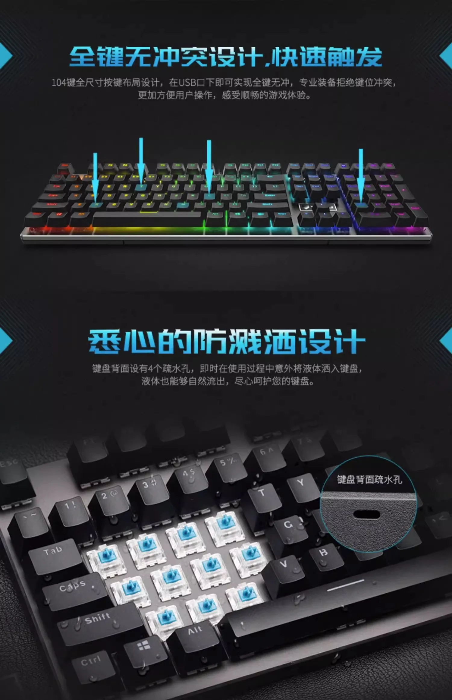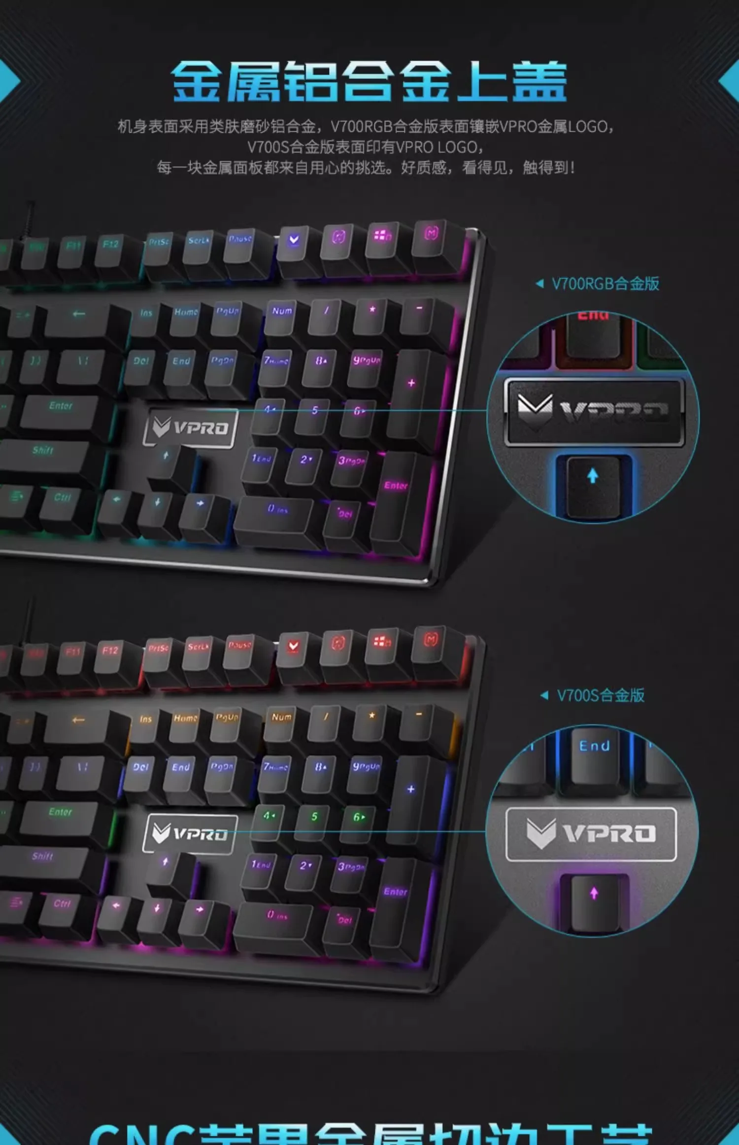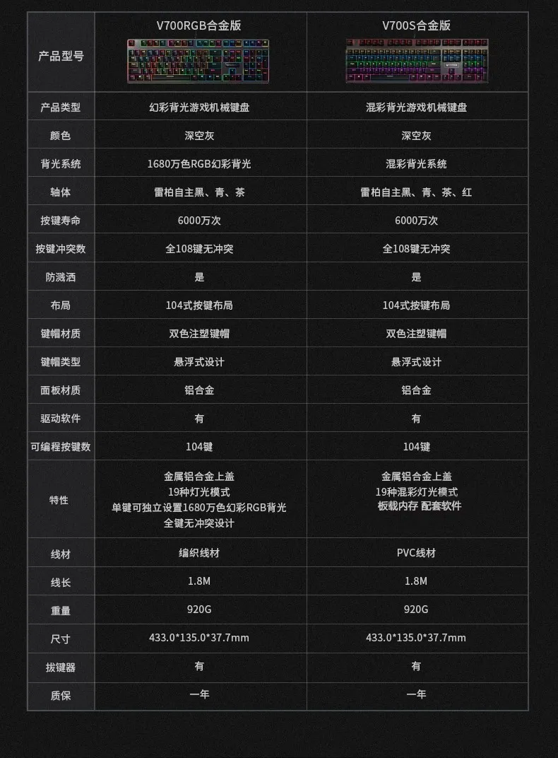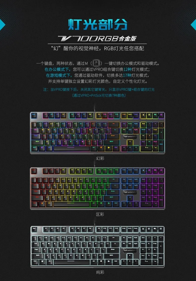 Comprar Rapoo-Teclado mecánico con cable V700 RGB, tecla completa de Metal CNC, sin perforaciones, teclado para juegos de deportes electrónicos, ordenador portátil de escritorio de oficina