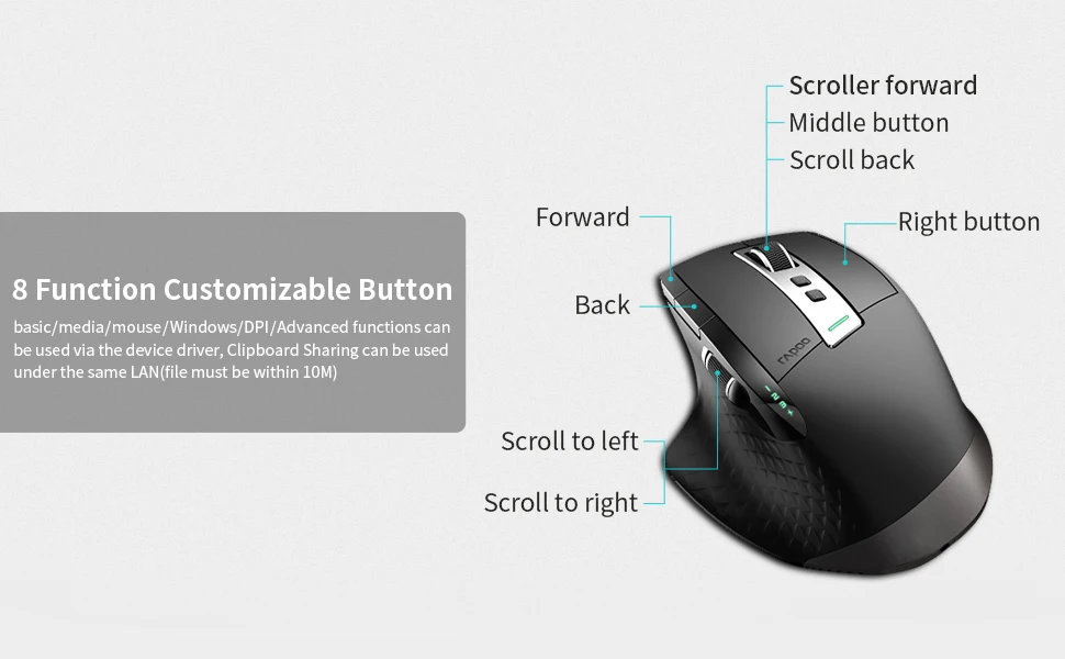 【Ratón inalámbrico multifuncional】 Ratón de 8 botones personalizados, 4 DPI (600/1200/1600/3200), cumple con diferentes requisitos de precisión, ratón de motor láser con almohadilla de pie de PTFE, fácil de usar, adecuado para varias superficies, no se requiere alfombrilla de ratón.