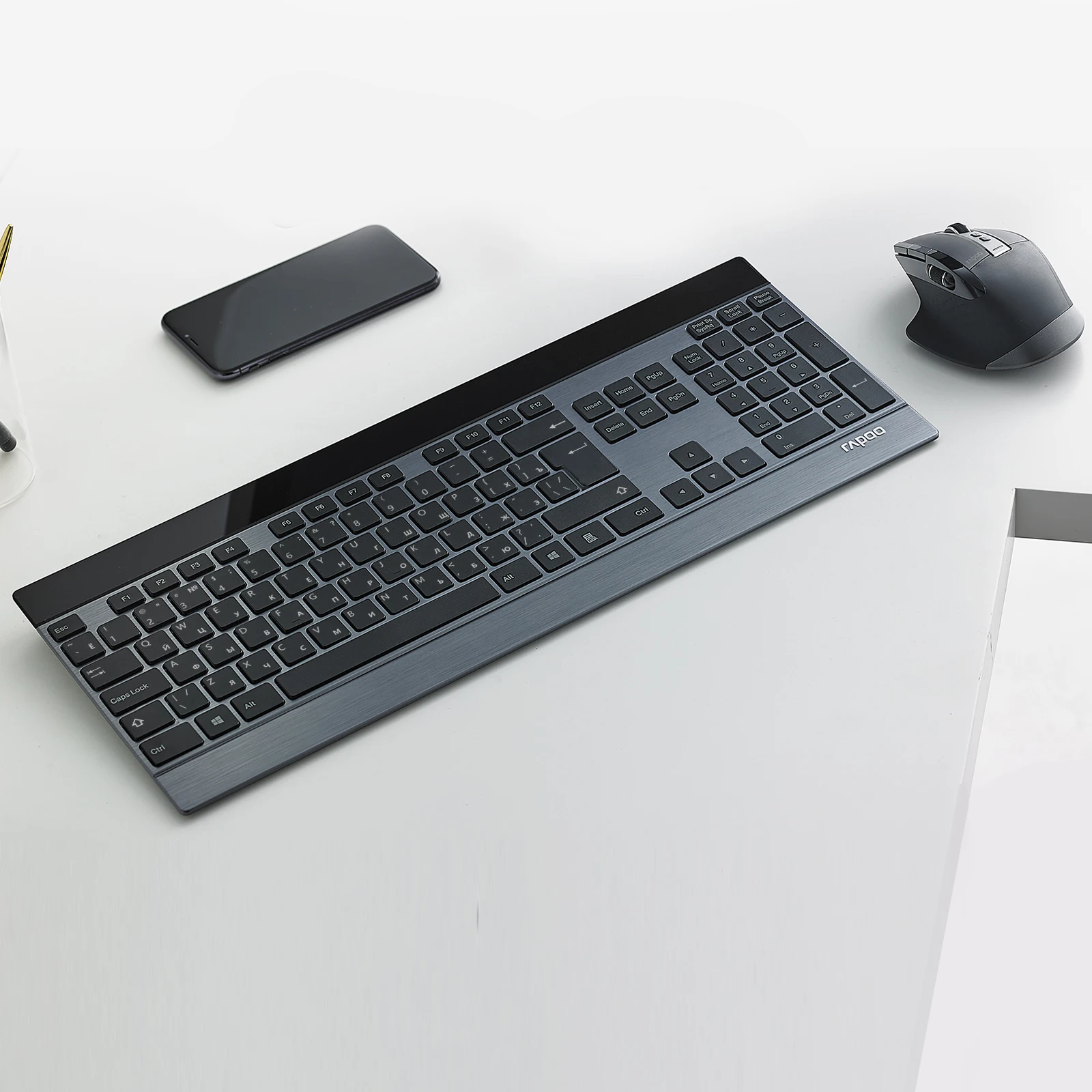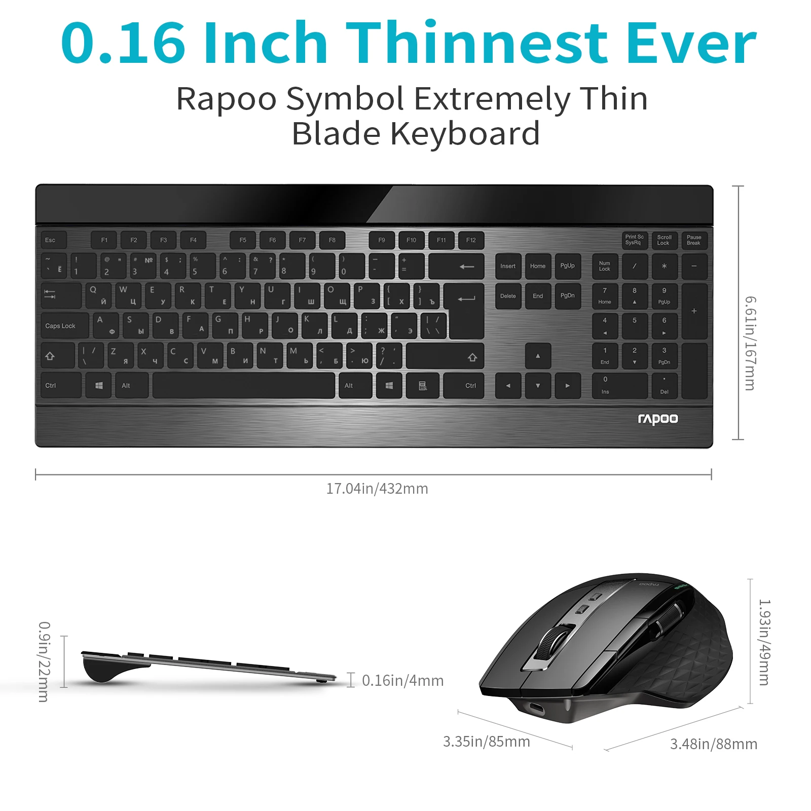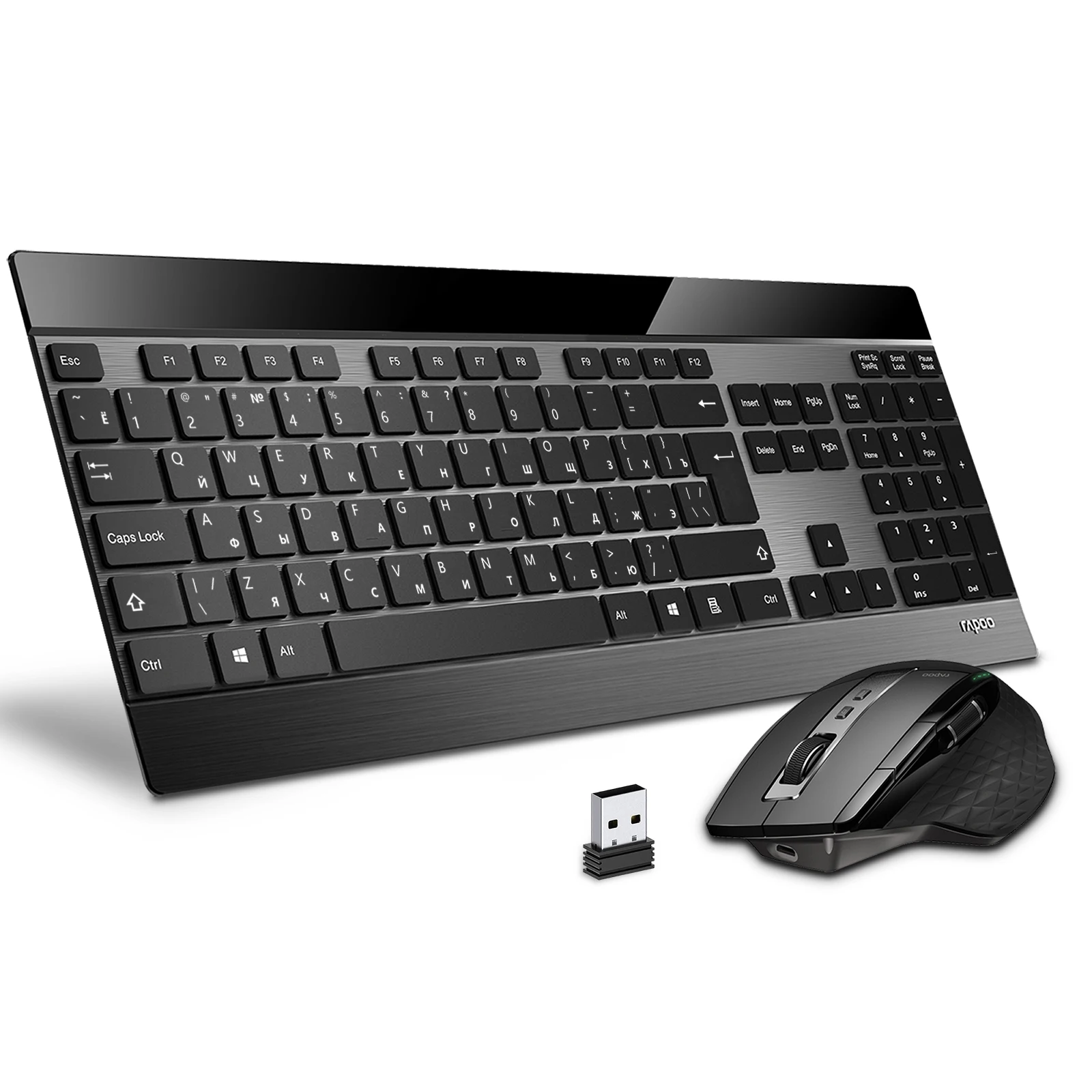 RAPOO 9900M Multi dispositivo (Bluetooth 3,0/4,0/2,4G) Combo de teclado inalámbrico y ratón láser, fácil de conectar hasta 4 dispositivos, blade Teclado extremadamente delgado y ratón multifuncional con sensor de alta precisión