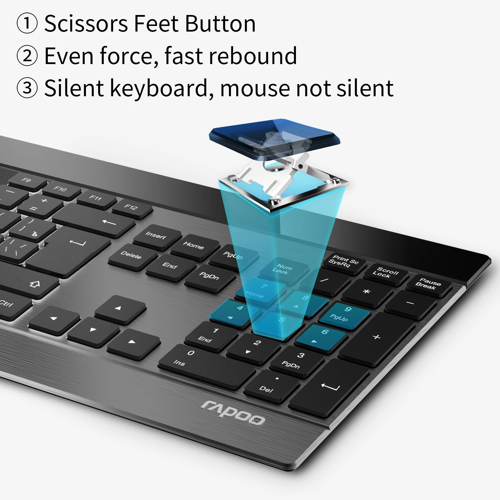 【Aspecto superior y experiencia del usuario】La base de acero inoxidable, La estructura precisa de las teclas de tijera y los botones elegantes flotantes hacen del teclado una herramienta elegante y duradera.