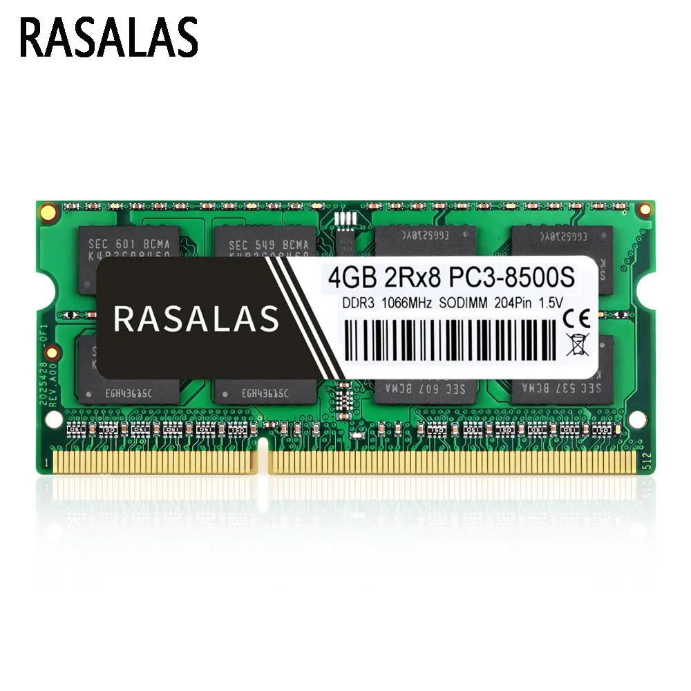 Comprar Rasalas-memoria RAM para portátil, 4 GB, 2Rx8, PC3-8500S, DDR3, 1066Mhz, SO-DIMM, 4 GB, 1,5V, 204 Pines, sodimm NO-ECC