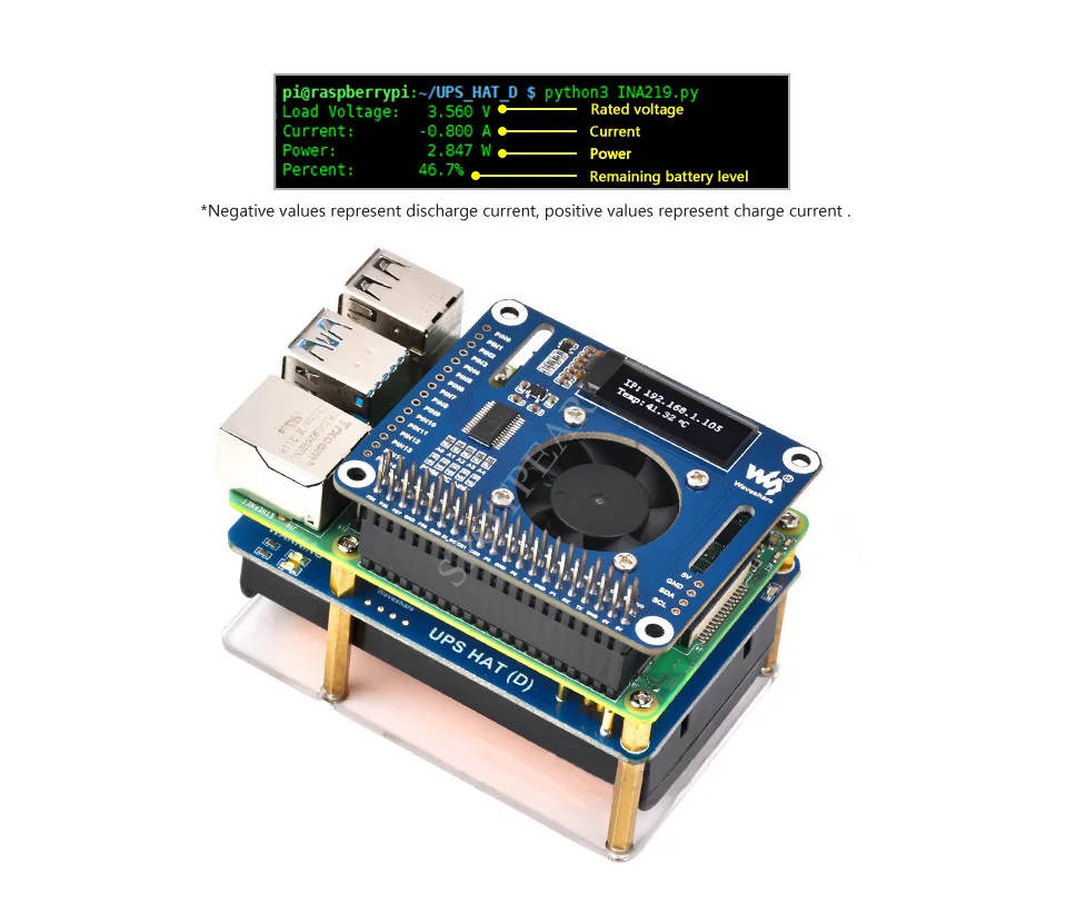 [] El UPS HAT (D) es una placa de expansión de fuente de alimentación ininterrumpida (UPS) especialmente diseñada para la serie Raspberry Pi. Chip de carga de batería Li de conmutación a bordo con gestión de ruta, Chip convertidor de impulso y chip de monitoreo de voltaje/corriente. Admite carga y descarga simultánea, y puede proporcionar una salida de voltaje estable de 5V. Además, puede controlar el estado de funcionamiento de las baterías a través de la interfaz I2C. Admite la visualización del nivel de batería en el sistema, fácil de comprobar la capacidad restante de la batería.