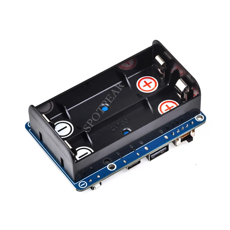 [] Adopta una interfaz USB tipo C para cargar y una interfaz USB tipo A para salida de potencia de 5V, conveniente para alimentar otras placas