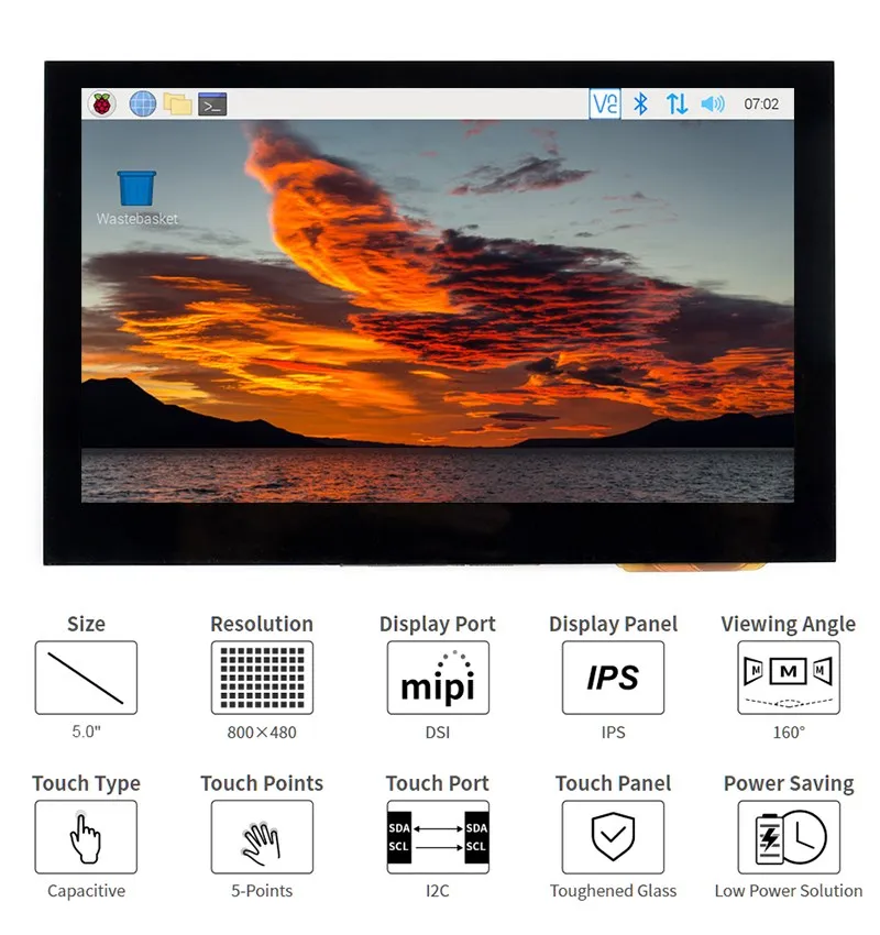 Raspberry Pi Pantalla táctil DSI de 4,3 pulgadas 800x480 Módulo LCD IPS MIPI TFT Monitor capacitivo para pantalla RPI 5 4B 3B + 3B