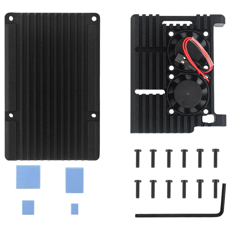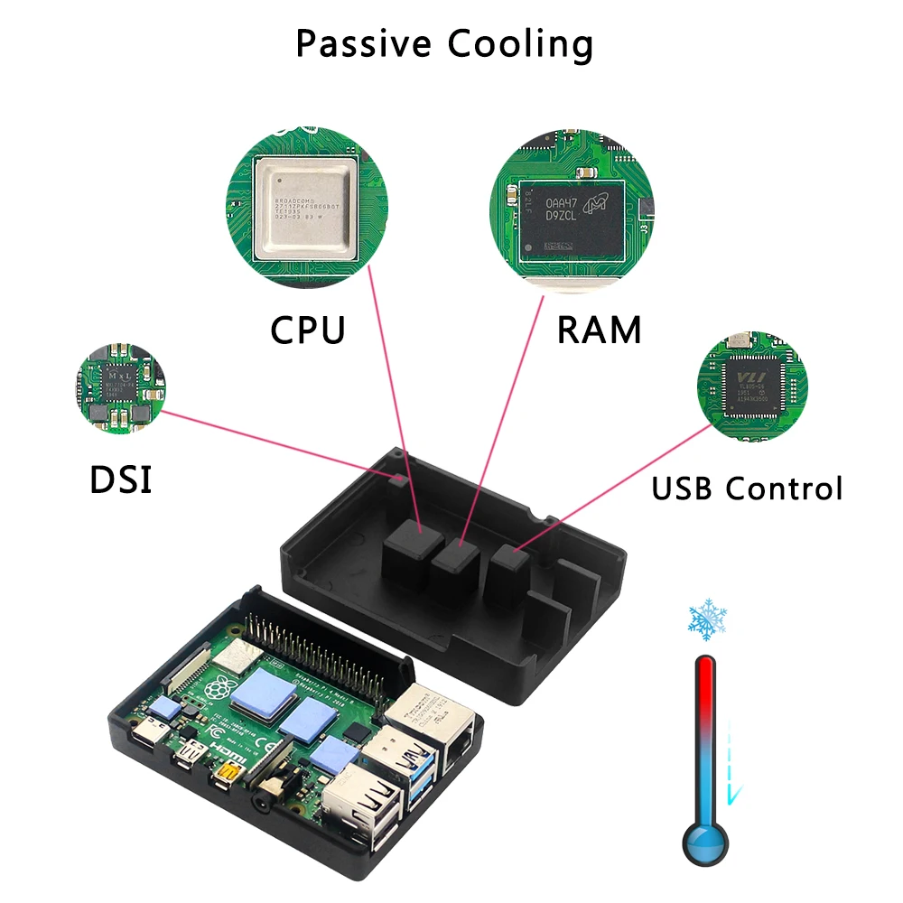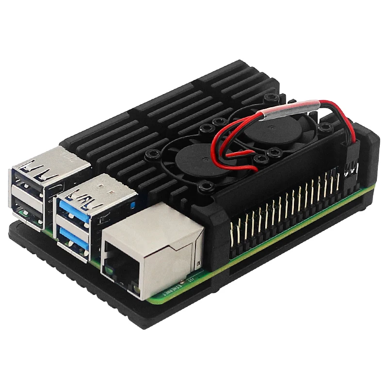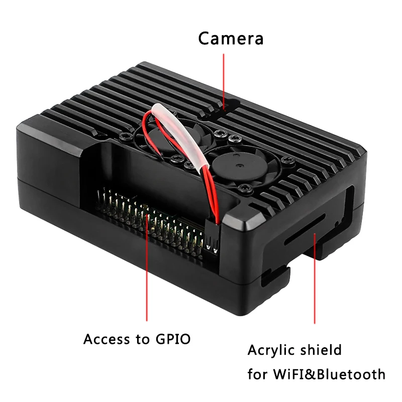 1.La carcasa de aleación de aluminio la hace más duradera de usar.Y el aluminio es metal, proporciona refrigeración pasiva para Raspberry Pi.