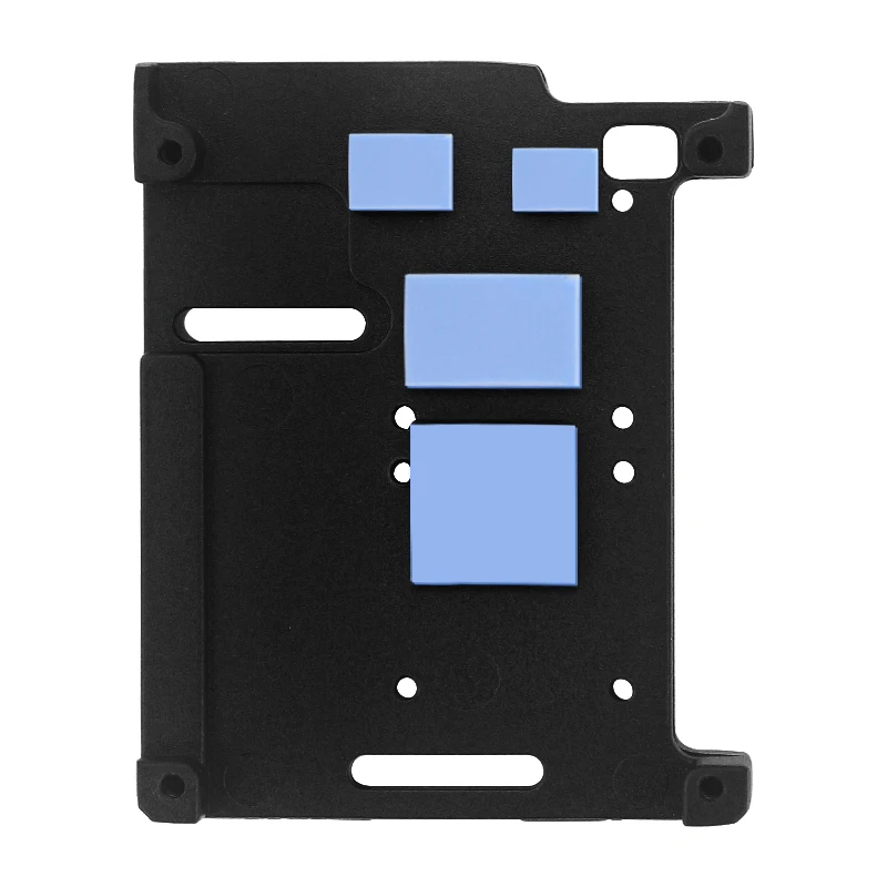 3.En lugar de enfriar el ventilador, utiliza el método de enfriamiento pasivo.La placa de cubierta extiende dos postes metálicos para conectar directamente la CPU, RAM, control USB y el módulo CSI.
