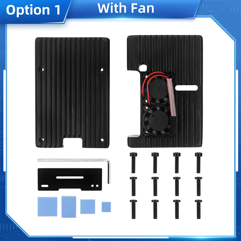 Comprar Raspberry Pi 4 Armor Shell Caja de aluminio con doble ventilador Active Passive Cooing Disipadores de calor Pads para Raspberry Pi 4 Modelo B