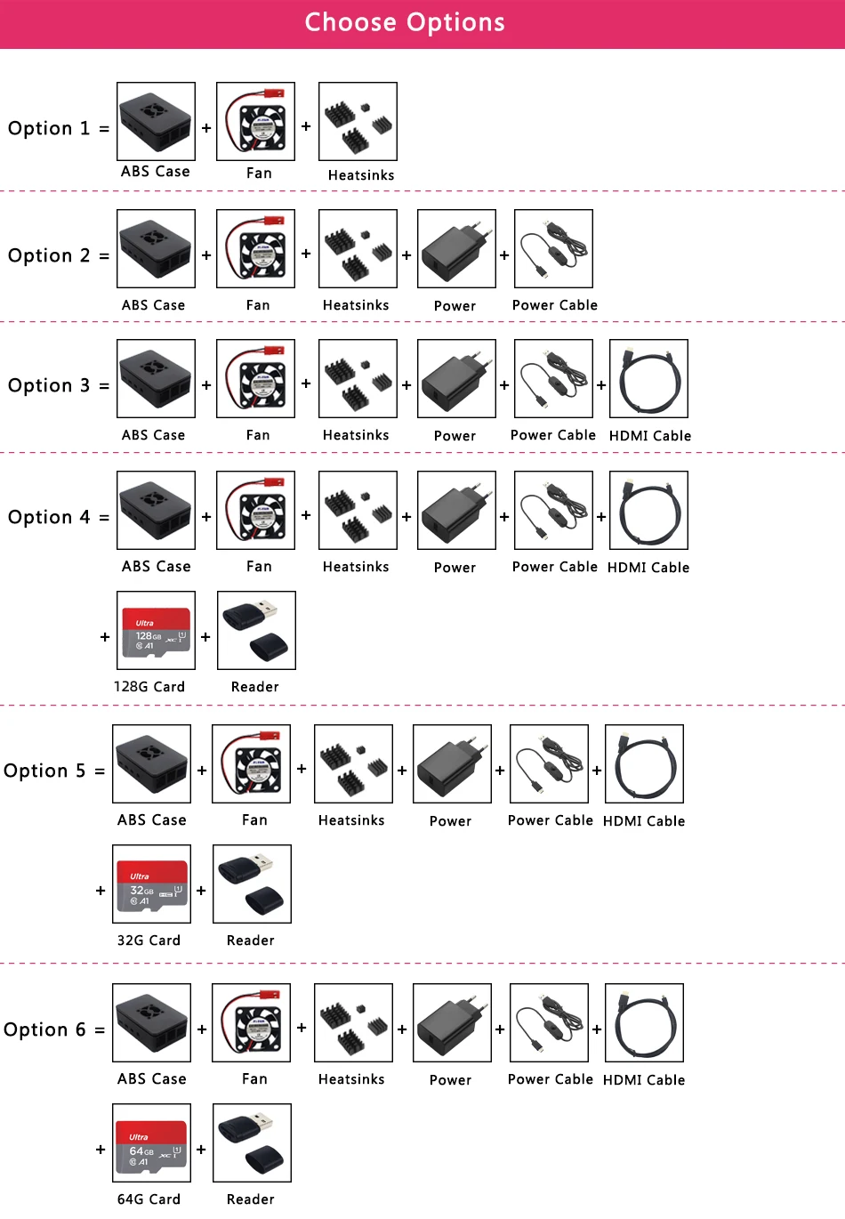 Los kits de accesorios para Raspberry Pi 4, con carcasa de ABS de alta calidad.Los accesorios no incluyen Raspberry Pi.