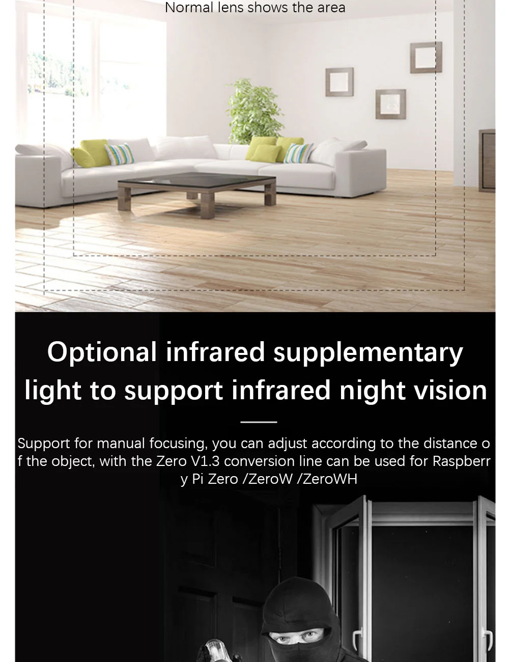 Raspberry Pi 4 Cámara ojo de pez de visión nocturna, 5MP, OV5647, 70/95/160 grados, cámara Focal ajustable para Raspberry Pi 3 Modelo B Plus