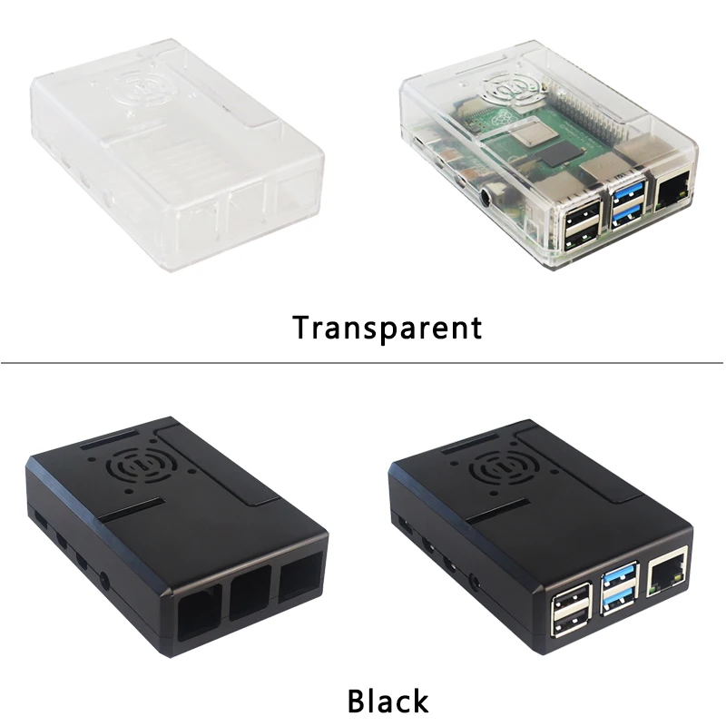 Esta es la carcasa de ABS para Raspberry Pi 4 Modelo B.Admite la instalación del ventilador de refrigeración en la cubierta y tiene una cubierta GPIO extraíble.Ofrecemos colores negro y transparente para elegir.Este enlace no contiene la placa Raspberry Pi.