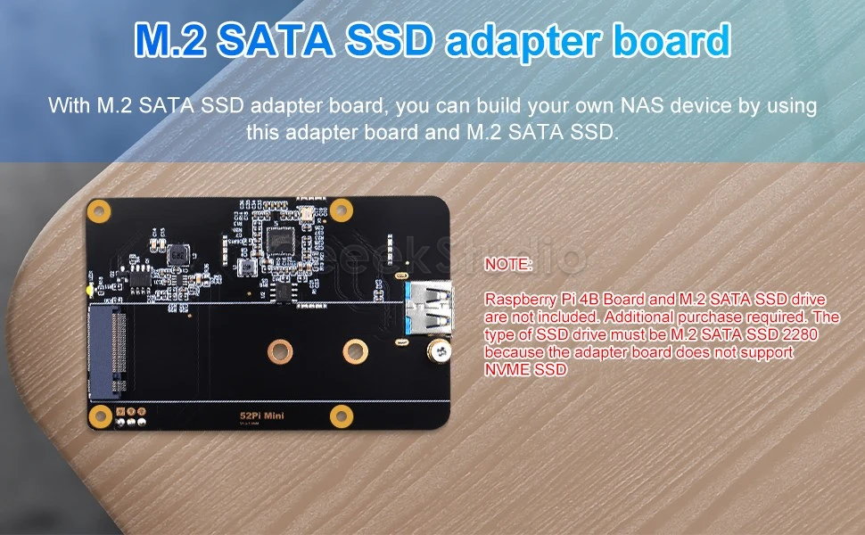 Al mismo tiempo, hay una placa adaptadora SSD SATA M.2 dentro del paquete, puede construir su propio dispositivo NAS utilizando esta placa adaptadora y SSD SATA M.2.