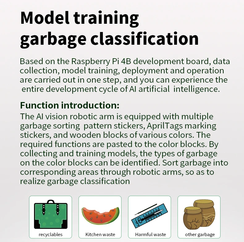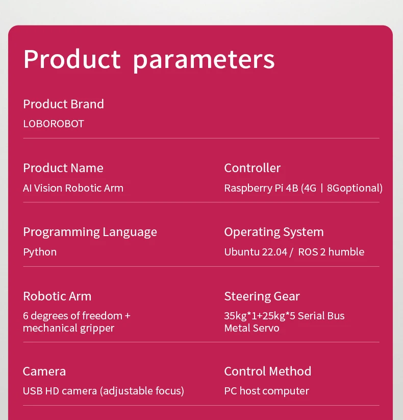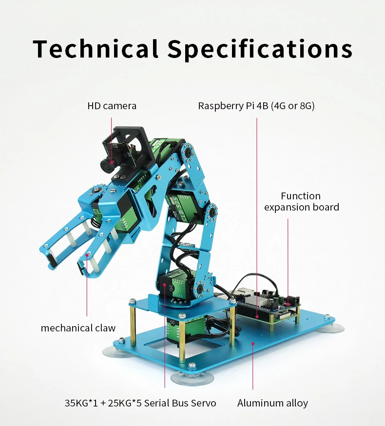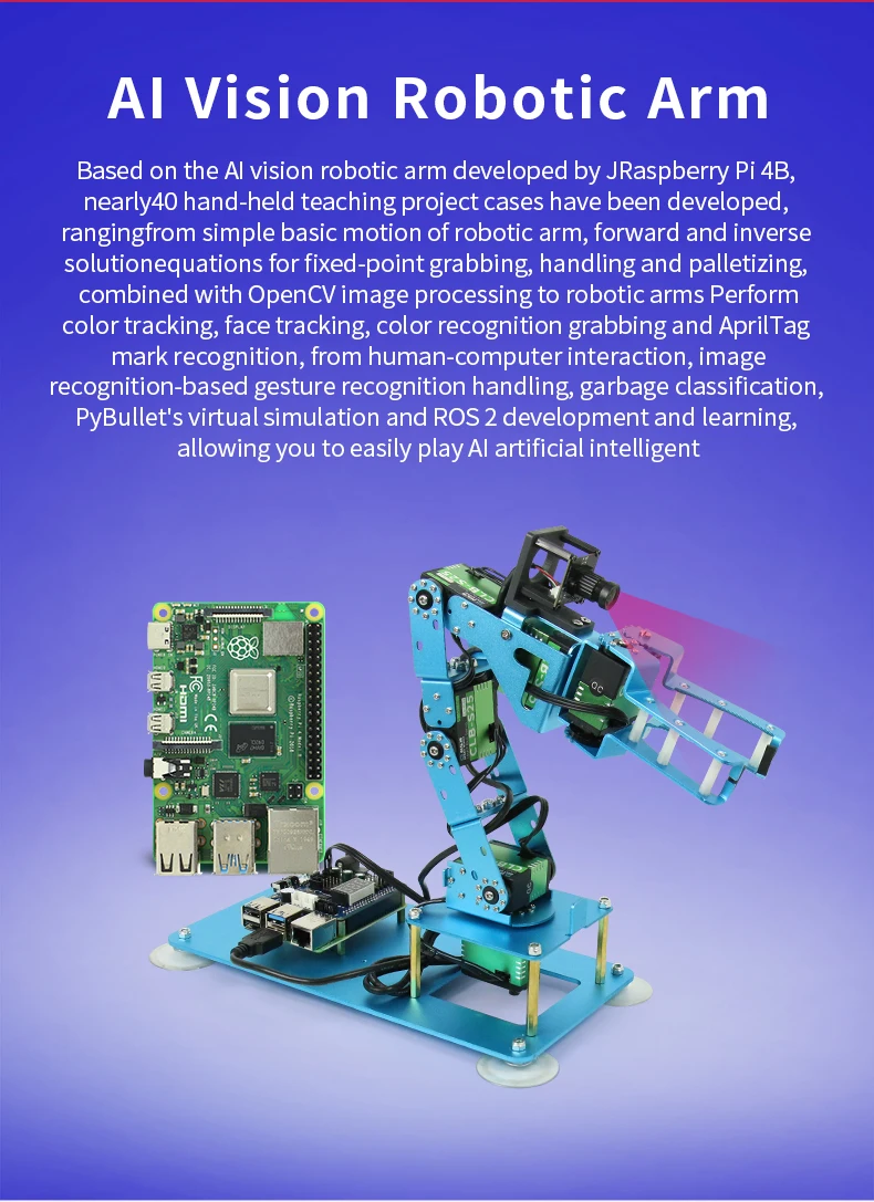 Raspberry Pi 4B AI Vision Robot inteligente Brazo Inteligencia artificial más práctica ROS2