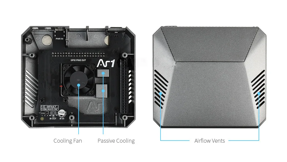 Toda la parte superior del estuche actúa como un enfriamiento pasivo para la Raspberry Pi, combinado con el ventilador de enfriamiento incluido y múltiples salidas de aire, brinda un excelente efecto de enfriamiento.