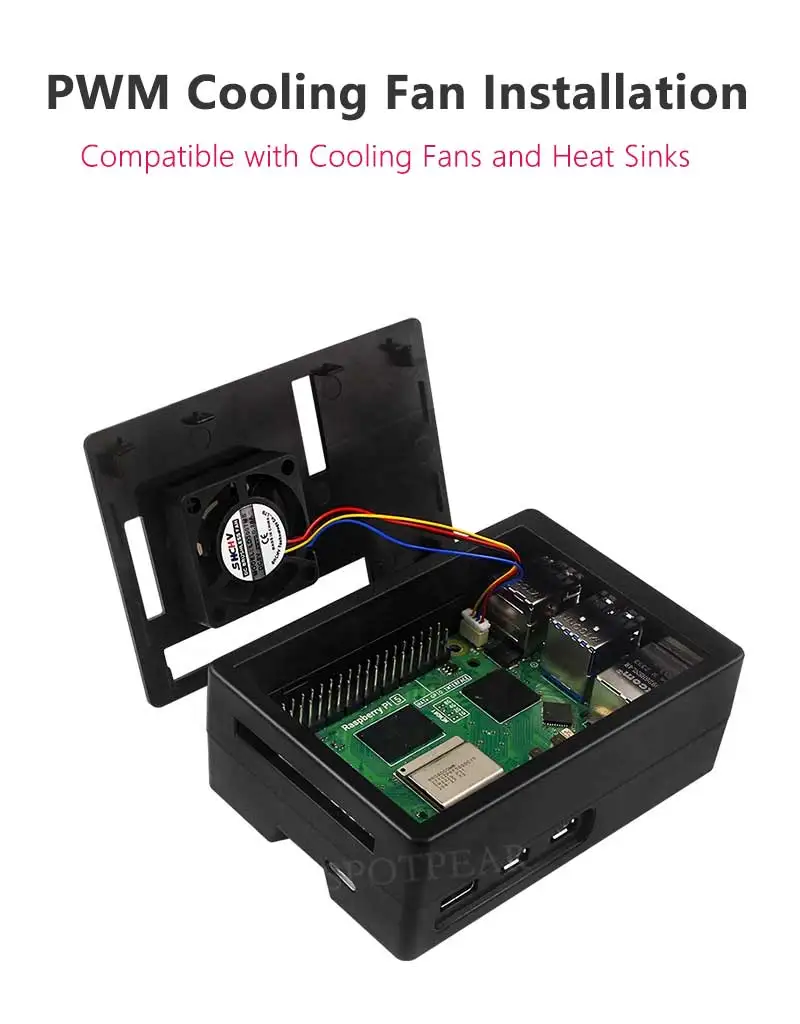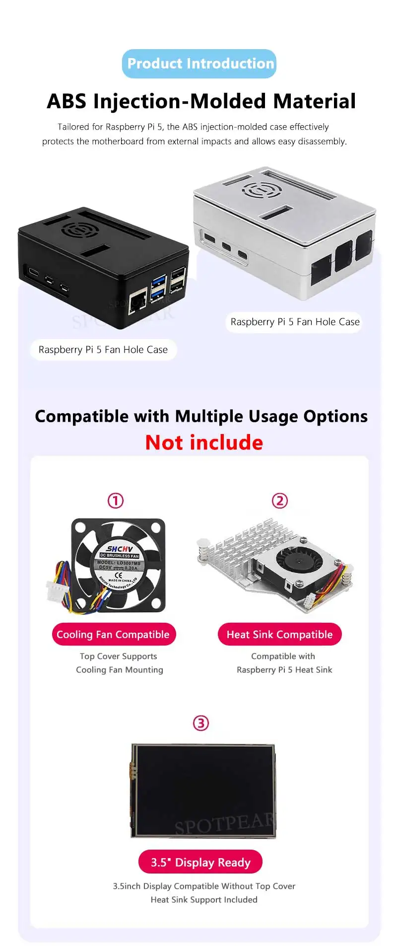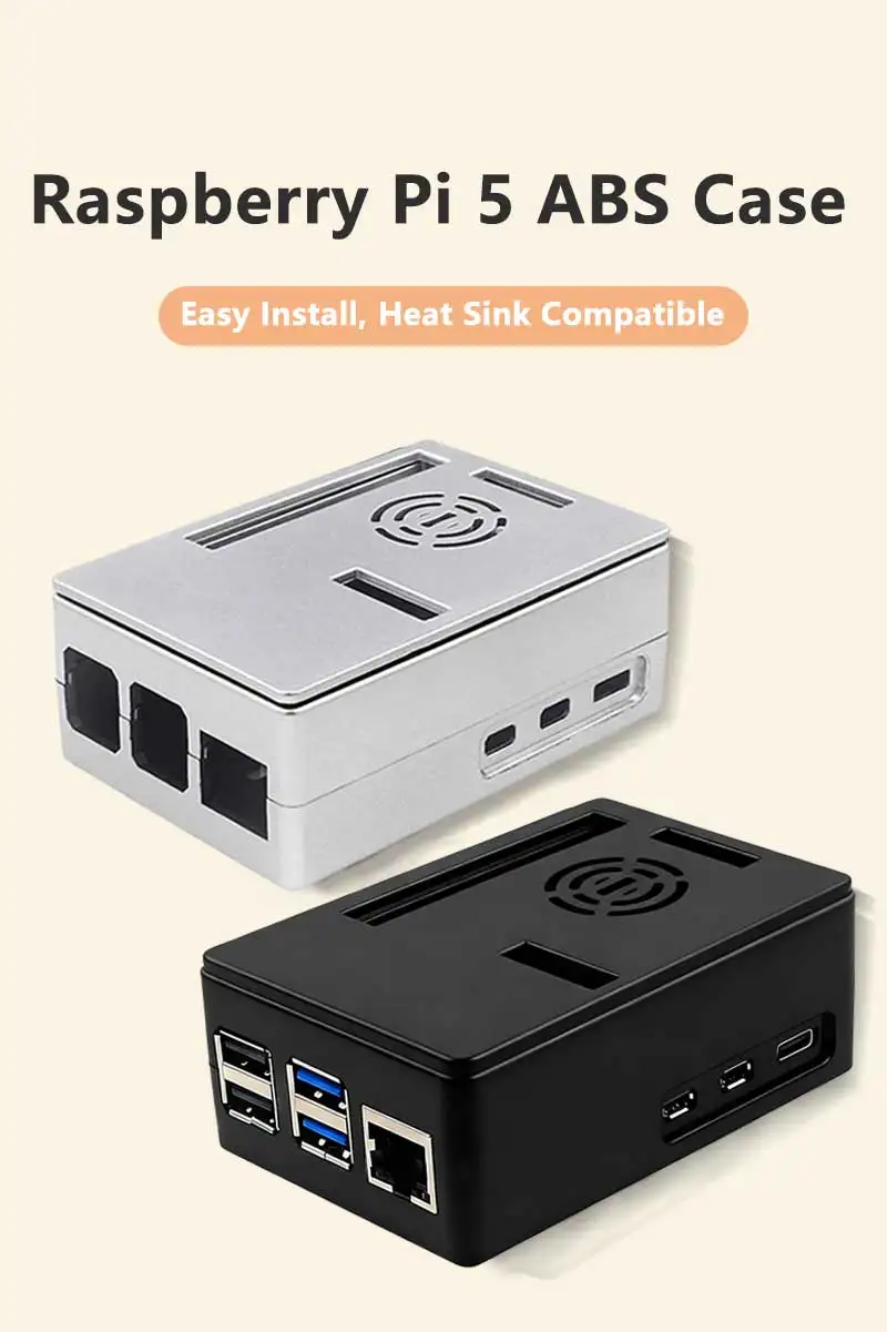Raspberry Pi 5 Caja ABS Pantalla de 3,5 pulgadas Orificio para ventilador Compatible Multiusos con cubierta extraíble y soporte para ventilador