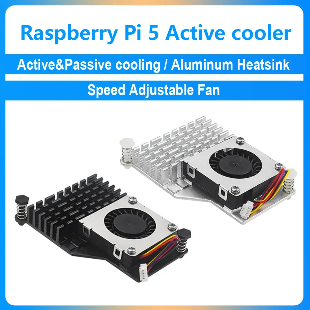 Comprar Raspberry Pi 5 enfriador activo disipador de calor de aluminio ventilador ajustable de velocidad PWM radiador de refrigeración negro plateado para RPI 5 Pi5