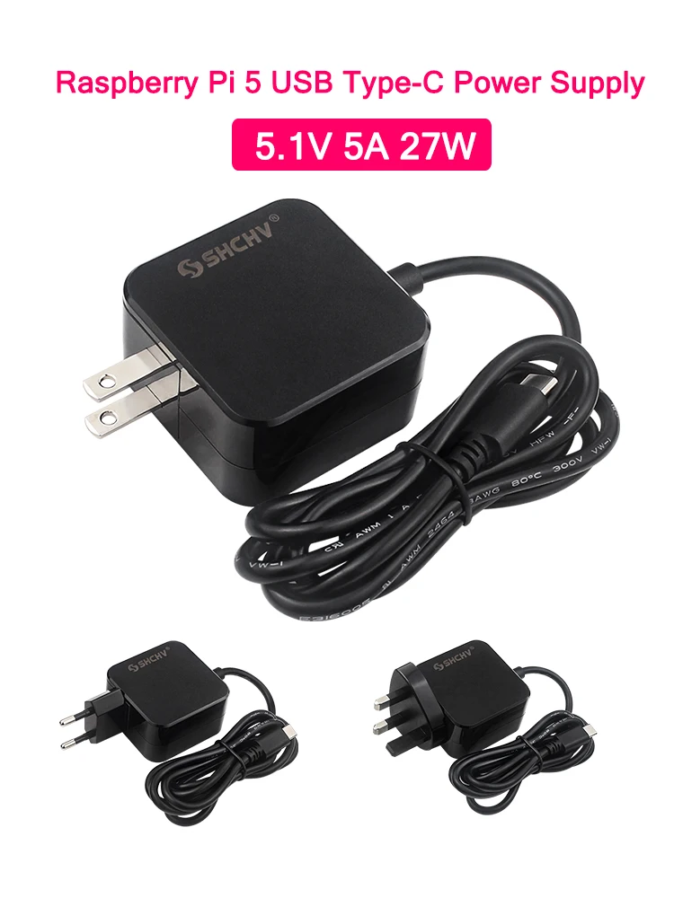 Fuente de alimentación Raspberry Pi 5, fuente de alimentación USB tipo c 27W 5,1V 5A adaptador de corriente con enchufe UE EE. UU. Reino Unido para Raspberry Pi 5