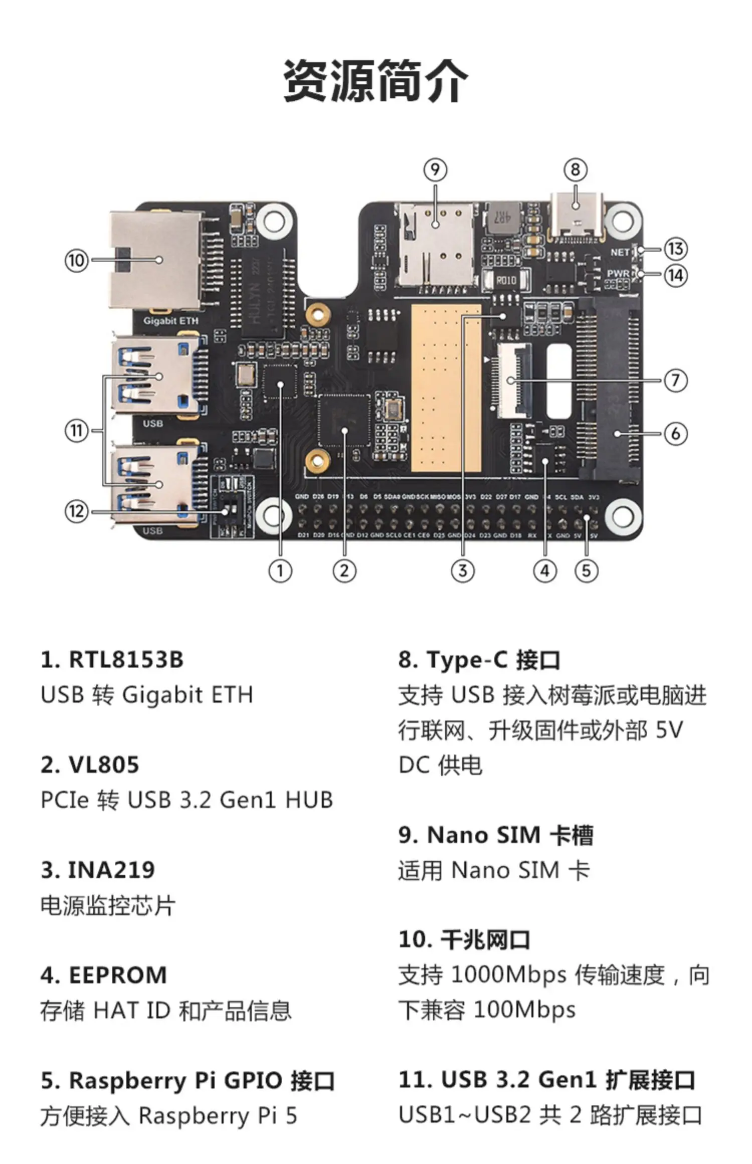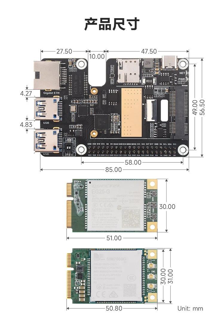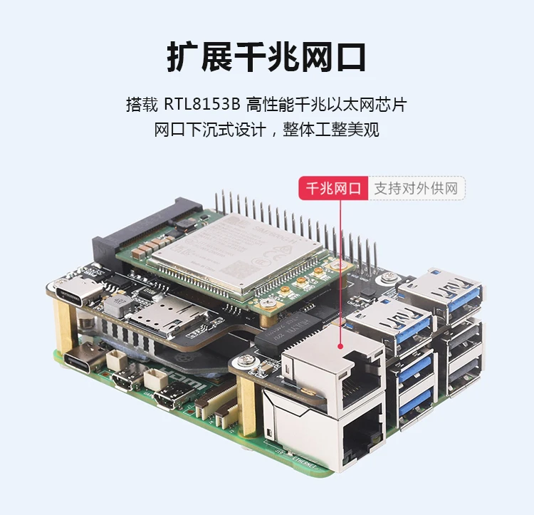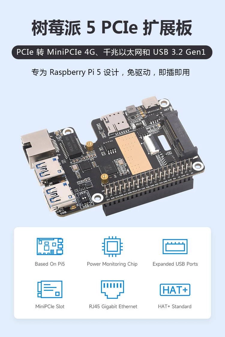 Raspberry Pi 5 Generación PCIe a Mini PCIe 4G Placa de expansión con puerto Ethernet Gigabit RJ45