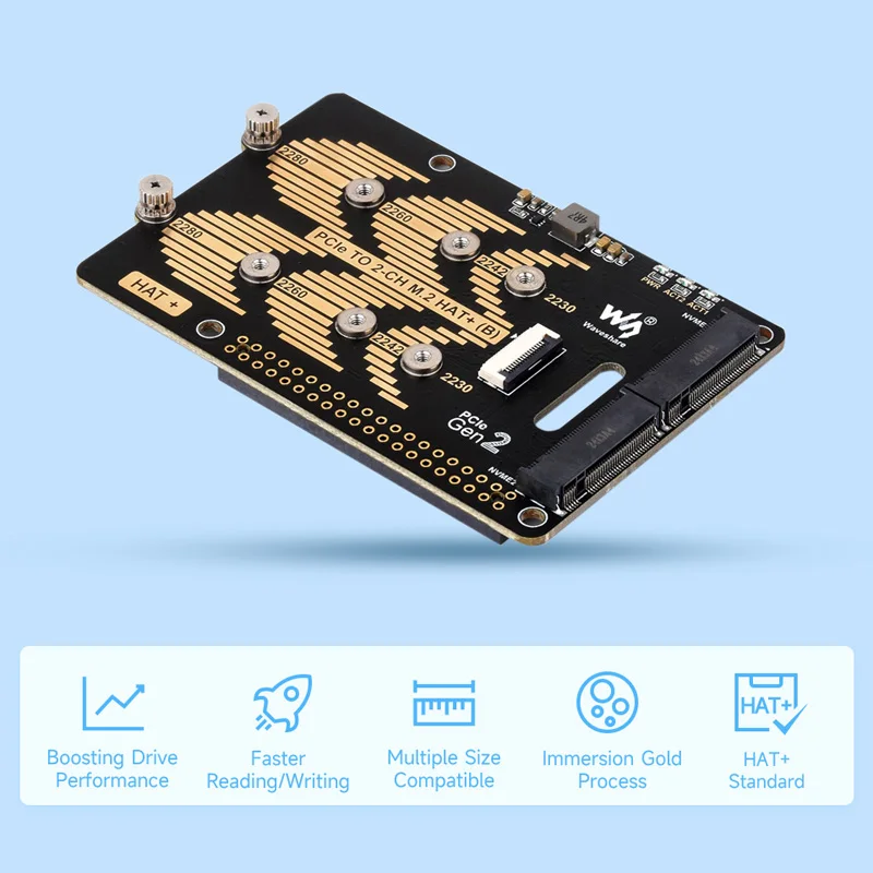 Funciona nada más sacarlo de la caja, no se necesitan controladores. Para aquellos que no saben atornillar el disco NVMe, asegúrese de utilizar la ranura central del tornillo. Esto evitará doblar el disco, como se muestra en la primera imagen. El disipador térmico original RPi 5 es compatible con este HAT