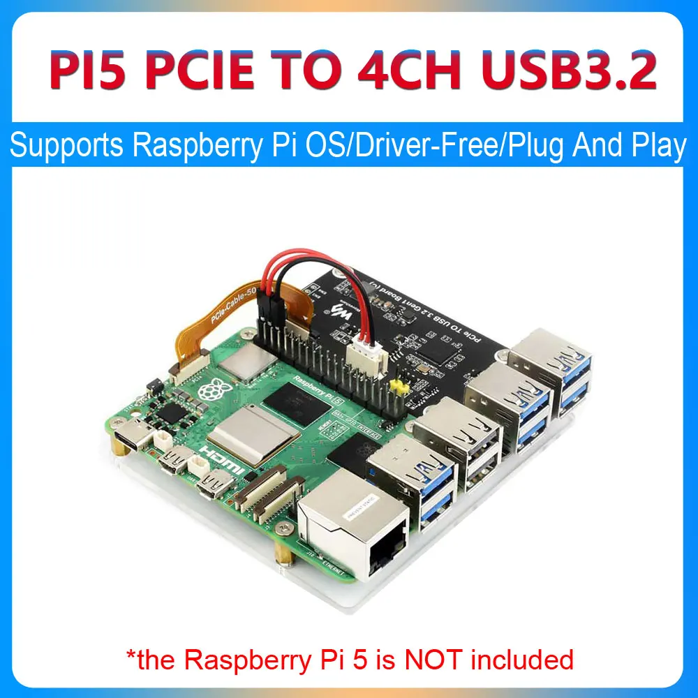 Comprar Raspberry Pi 5 PCIe a 4 canales, Hub de placa de expansión USB3.2 Gen1, 5Gbps, para Raspberry Pi OS Drive gratis