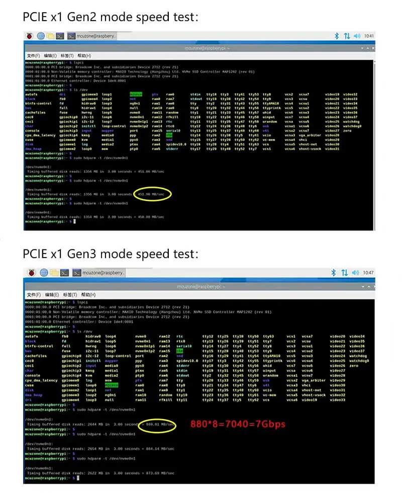 [] El ancho de banda teórico del modo PCle Gen2 oficial de Raspberry Pi es de 5Gbps, y elEl ancho de banda teórico del modo PCle Gen3 es de 8Gbps.