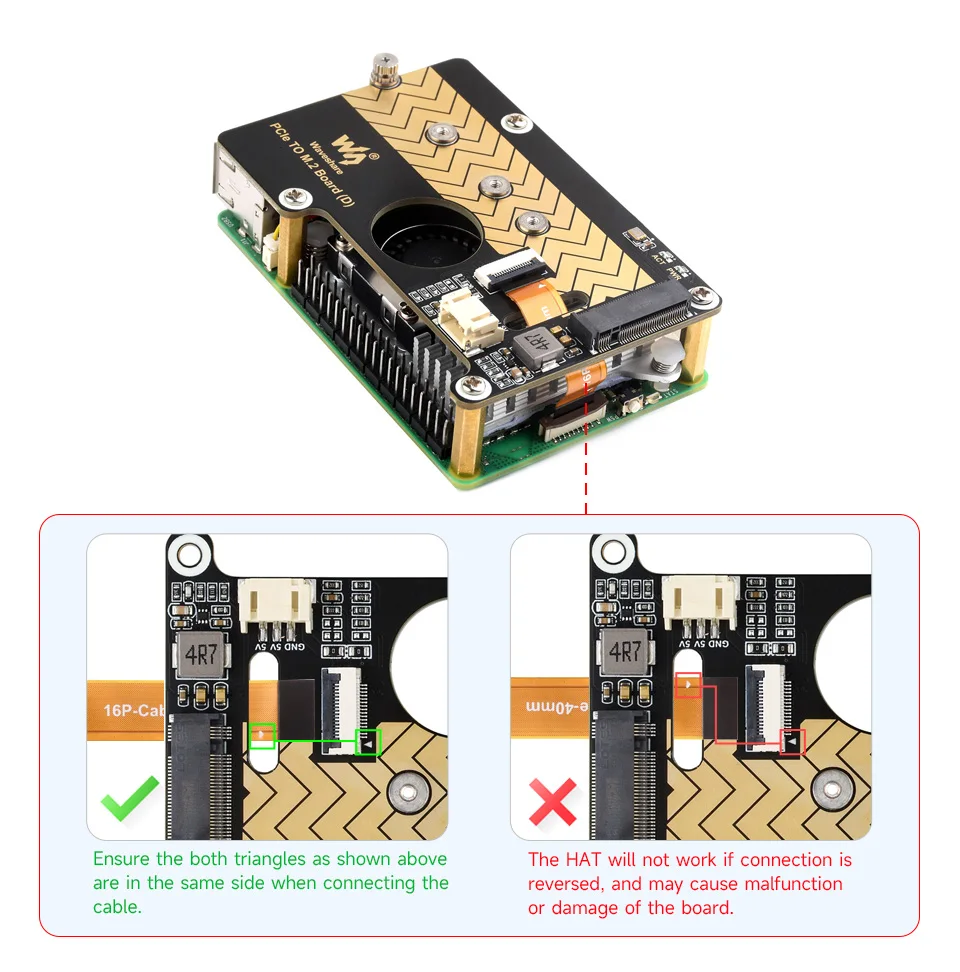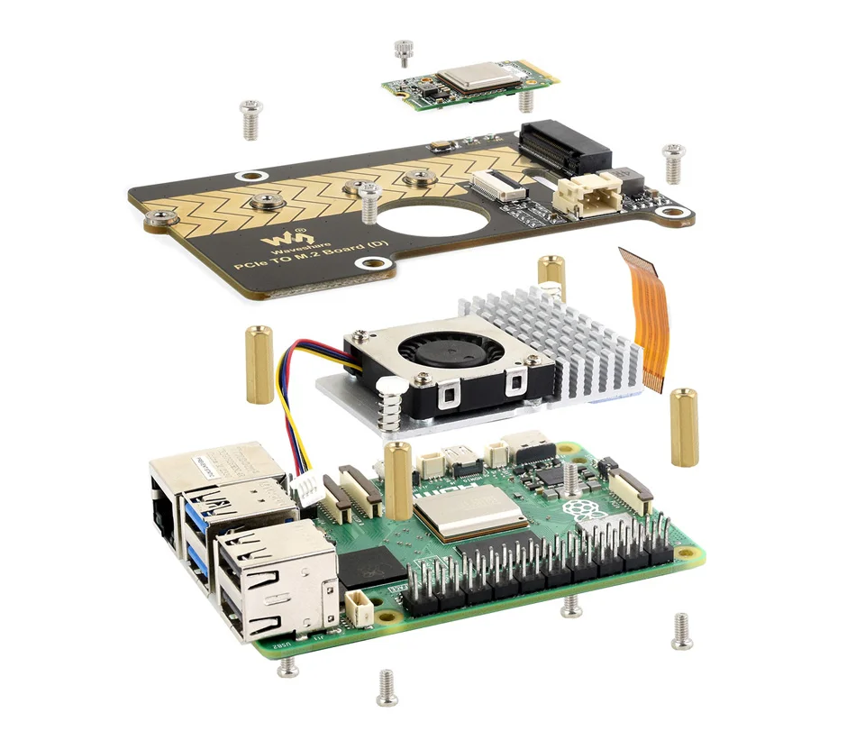 [] Basado en el diseño de interfaz PCIe de 16 Pines de Raspberry Pi 5, conserva la posición de la ventilación del ventilador y la interfaz GPIO de 40 Pines de Raspberry Pi