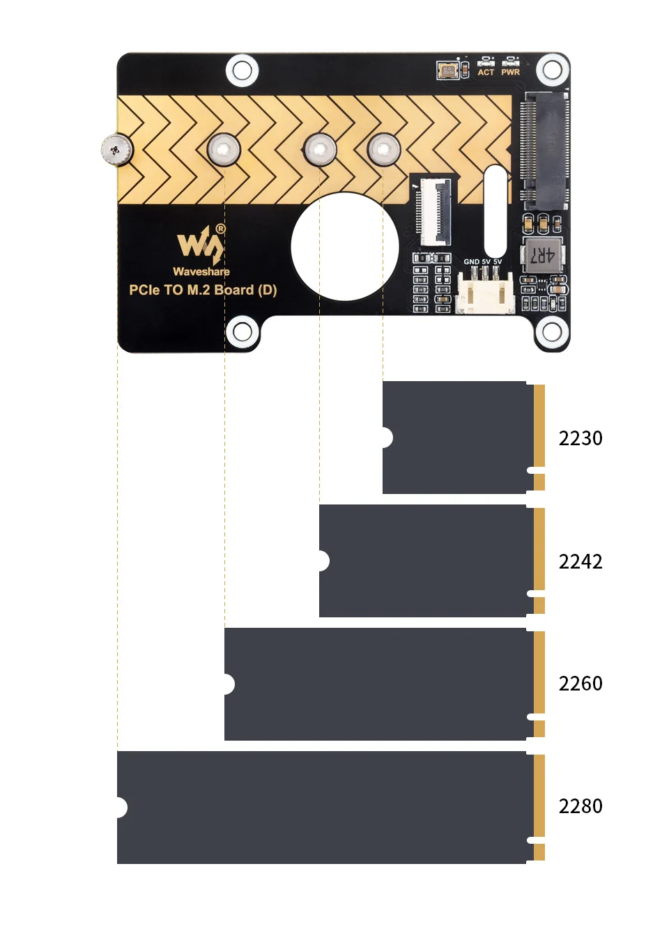 Comprar Raspberry Pi 5 PCIe a M.2 NVMe SSD placa adaptadora (D) HAT Pi5-2280-2242-2230 para PI5