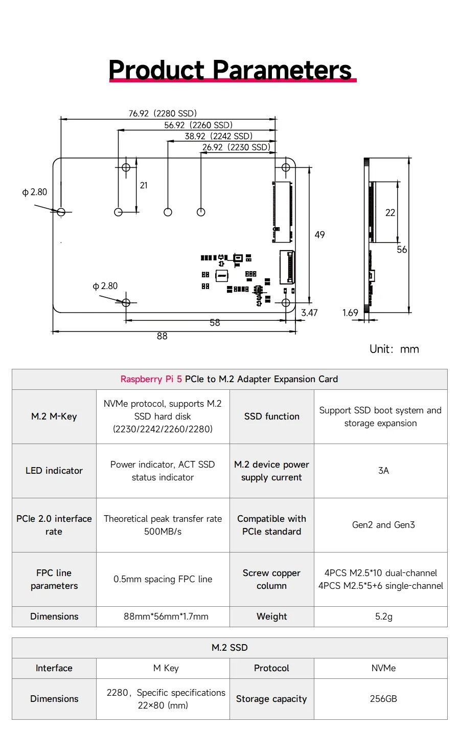 PCIe to M.2 Adapter Expansion Board Product Parameters: