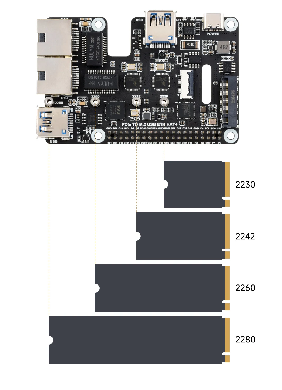 PCIe A M.2 USB ETH SOMBRERO+ x1