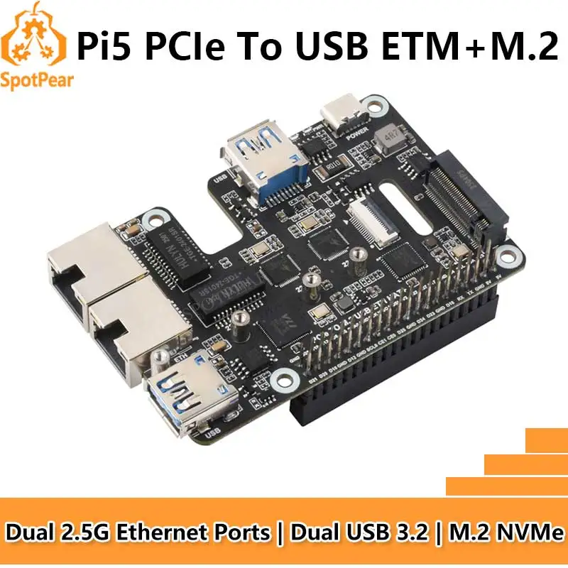 Comprar Raspberry Pi 5 PCIe a USB3 HUB doble 2,5G ETH RJ45 y M.2 NVMe SSD PI5 placa de expansión HAT +