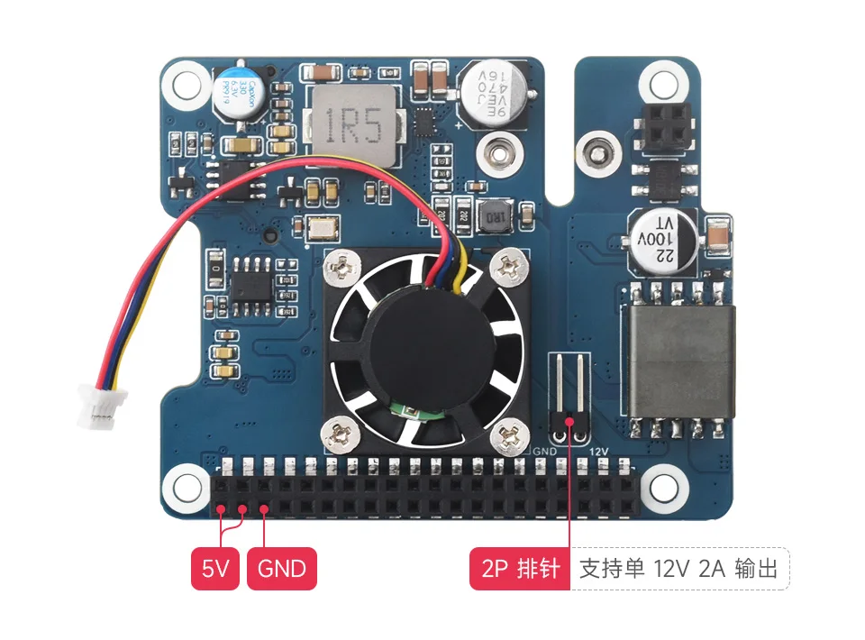 [] El encabezado de 5 V proporciona una salida de hasta 4,5 A (MÁXIMO 25 W para una potencia de salida total de 12 V + 5 V)