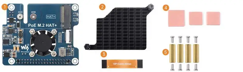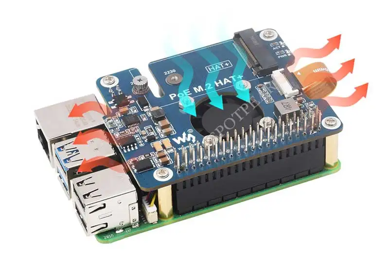 [] PoE M.2 HAT para Raspberry Pi 5, compatible con el estándar de red 802.3af/at