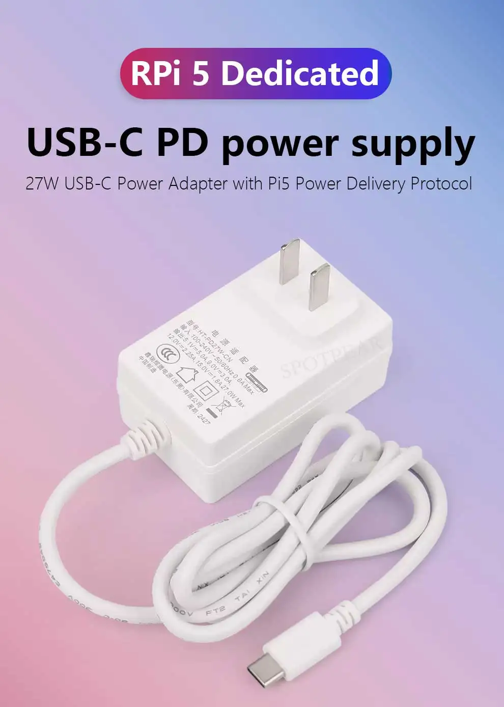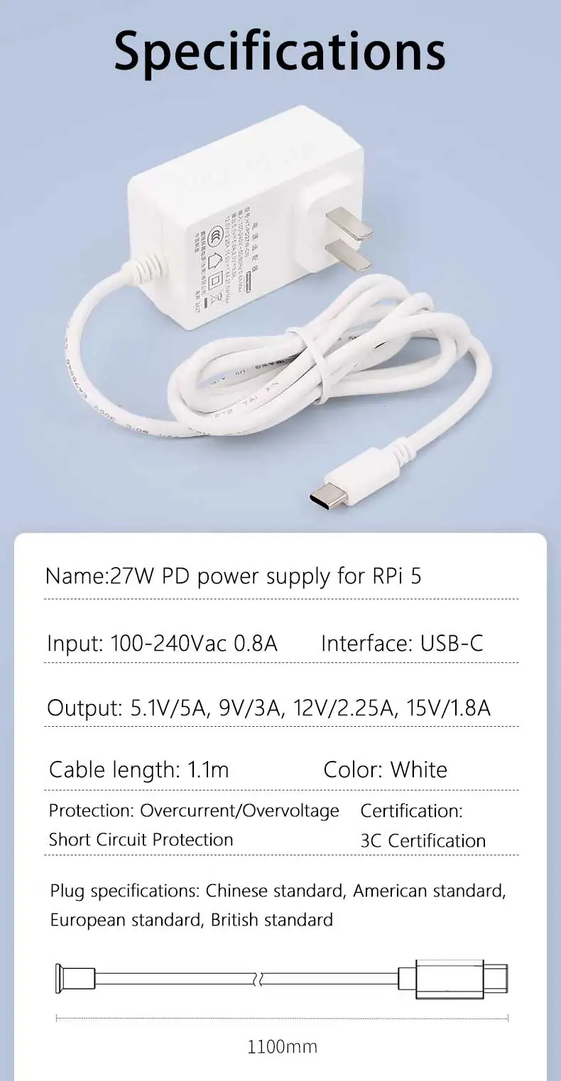 5,1 V/5 A, 9 V/3 A, 12 V/2,25 A, 15 V/1,8 A (entrega de energía)