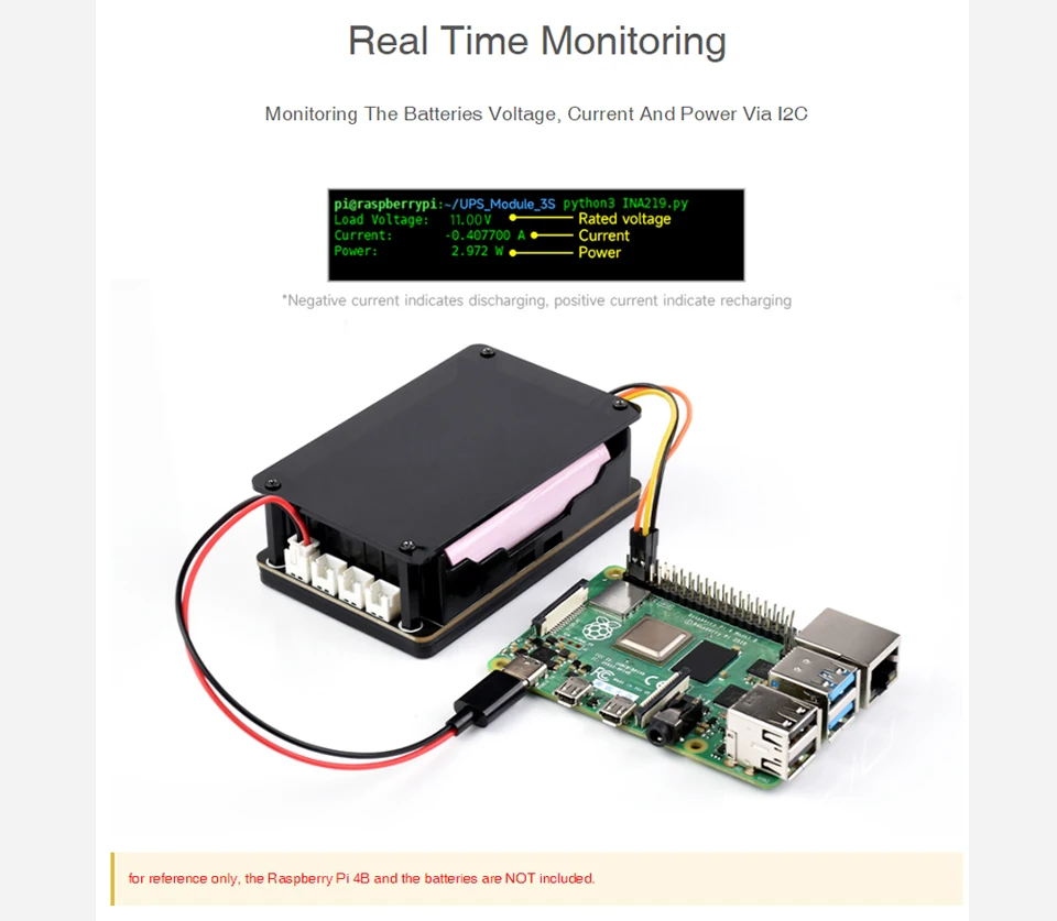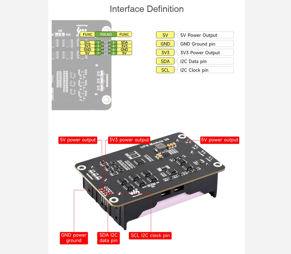 Raspberry Pi 5 UPS HAT compatible con batería de litio 18650 Fuente de alimentación ininterrumpida de 5 V a través del bus I2C para Pi 4 Modelo B
