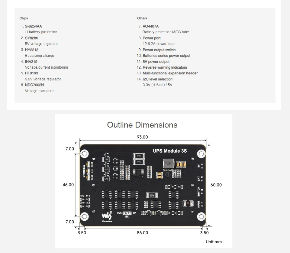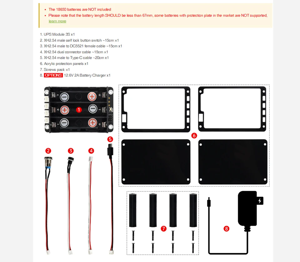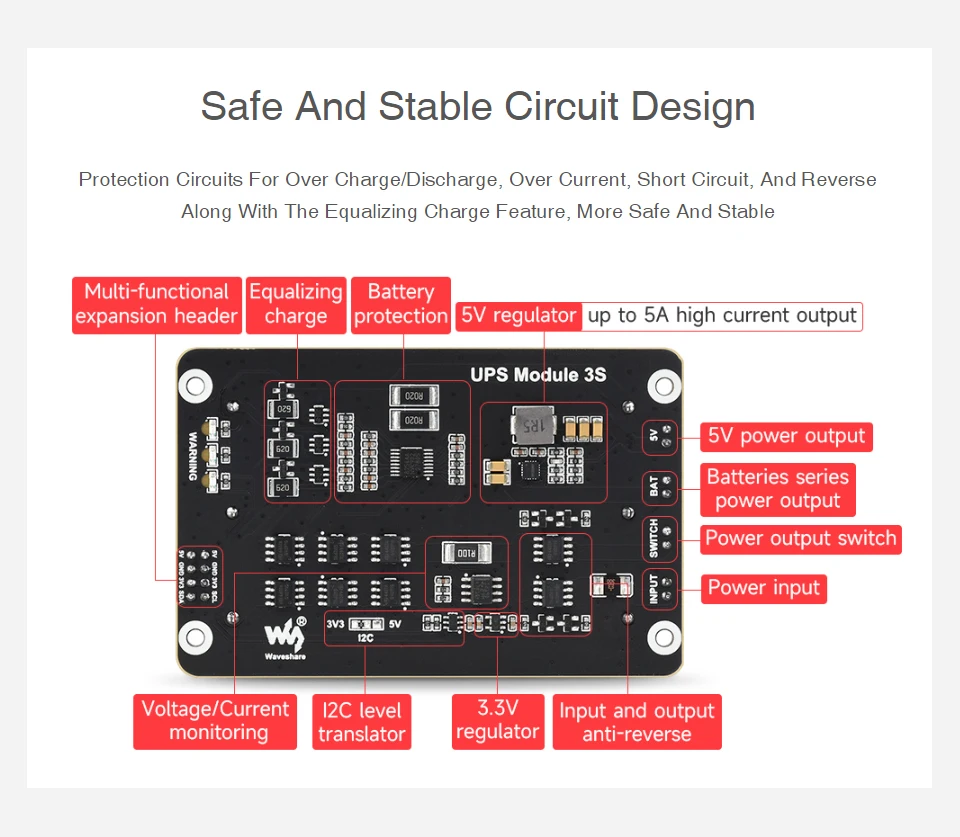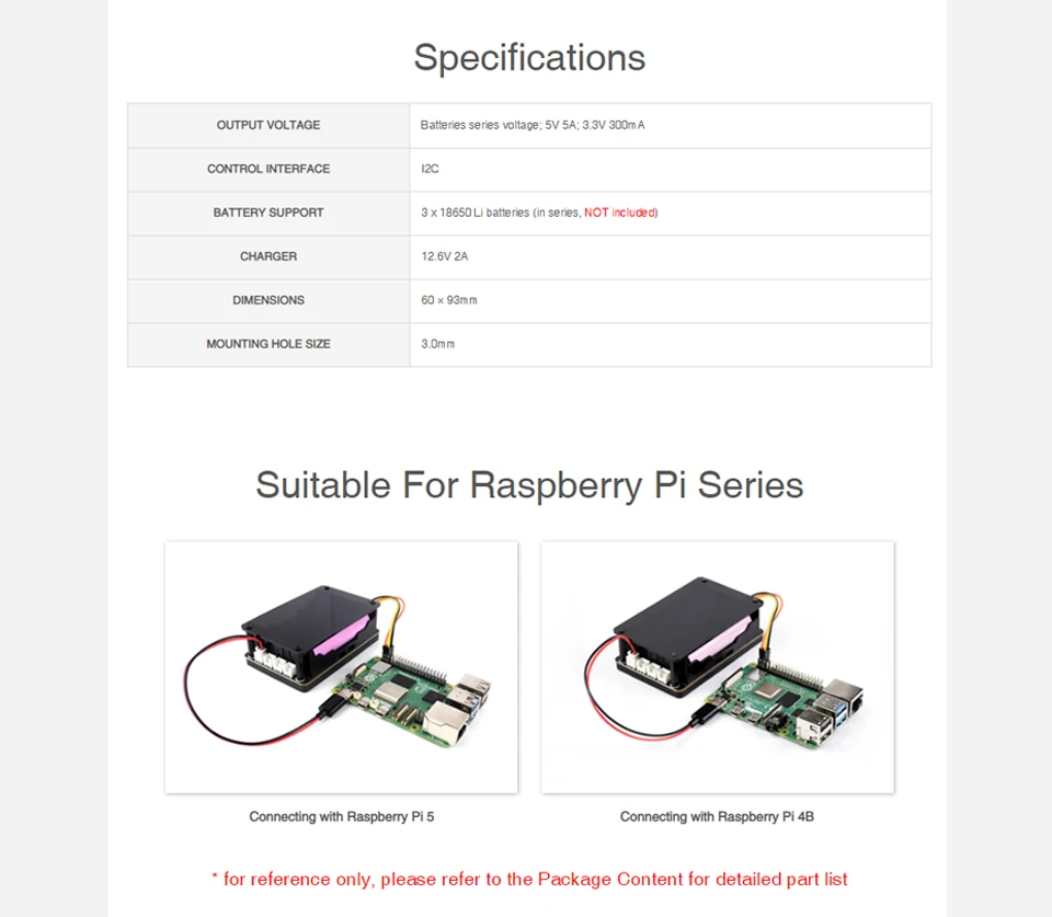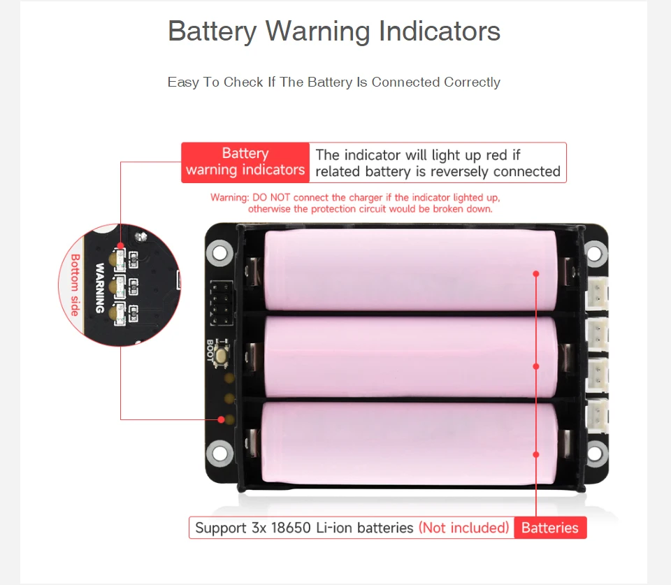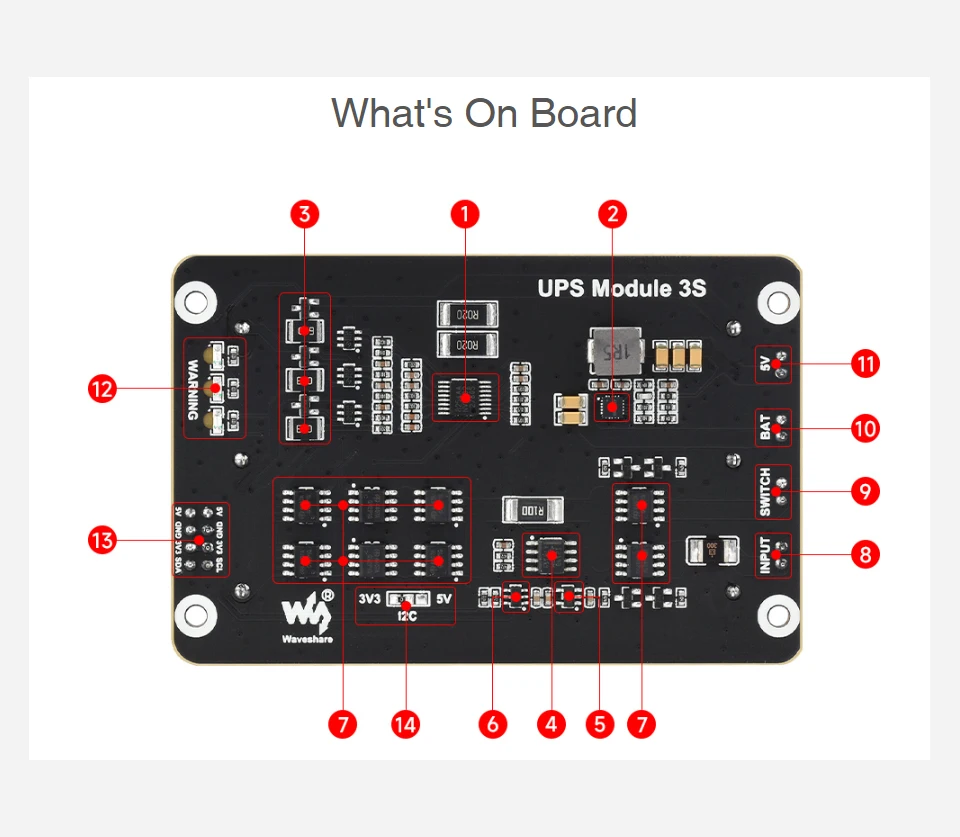 Raspberry Pi 5 UPS HAT Soporte 18650 Li Batería 5V Fuente de alimentación ininterrumpida a través de bus I2C para Pi 4 Modelo B