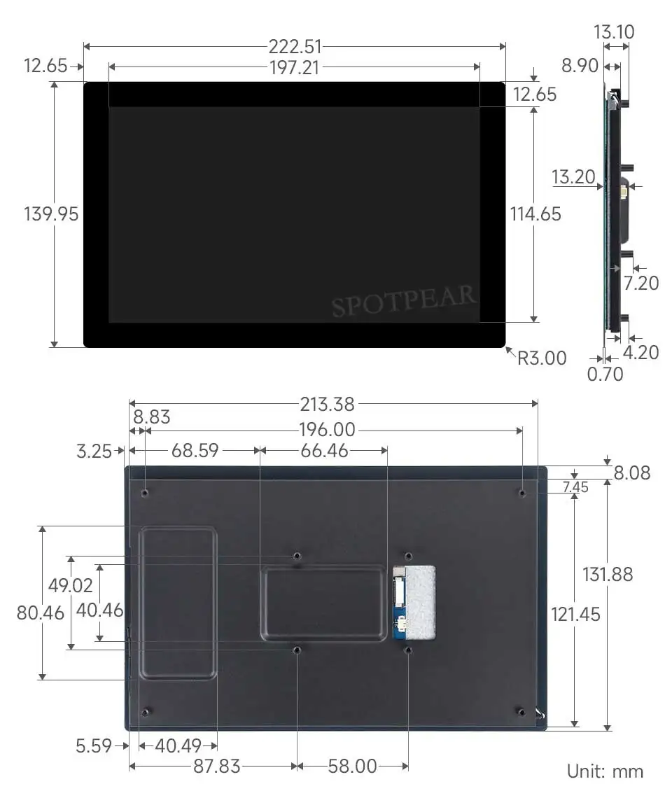 Pantalla táctil DSI de gama de colores de 9′′ de ancho