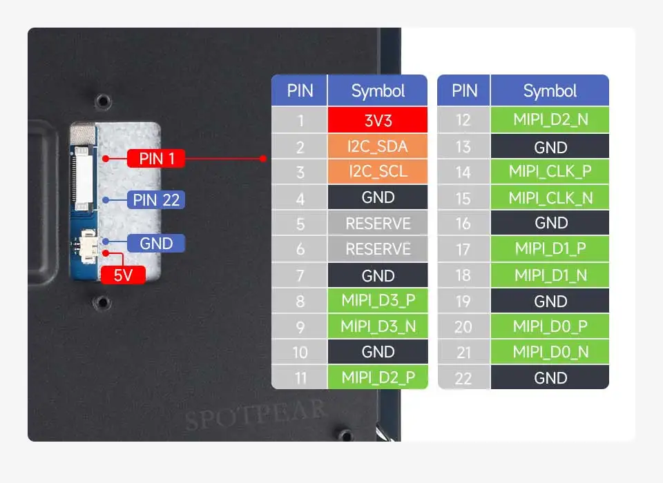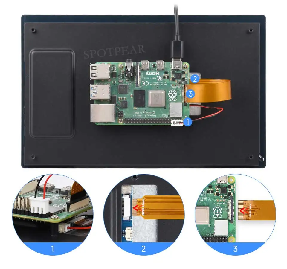 Conecte el cable FFC como se muestra arriba y encienda la pantalla LCD a través del pin GPIO de 5 V.