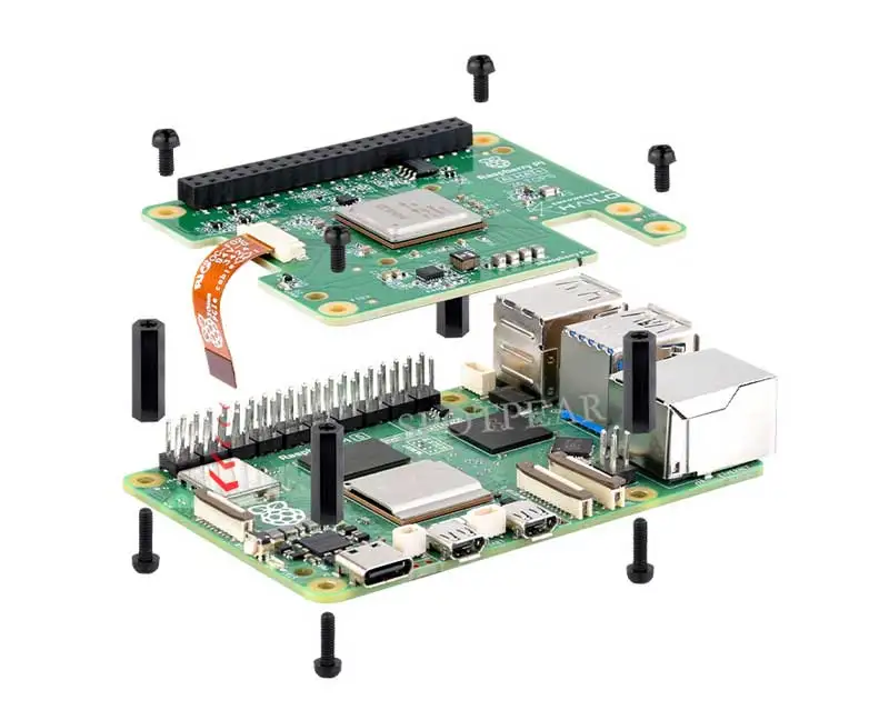 El AI HAT+ se comunica utilizando la interfaz PCIe Gen 3 del Raspberry Pi 5.Detecta automáticamente el acelerador Hailo integrado y hace que la NPU esté disponible para tareas de computación AI.Las aplicaciones de cámara rpicam-app integradas en el sistema operativo Raspberry Pi admiten nativamente el módulo AI, utilizando automáticamente la NPU para ejecutar tareas de posprocesamiento compatibles.