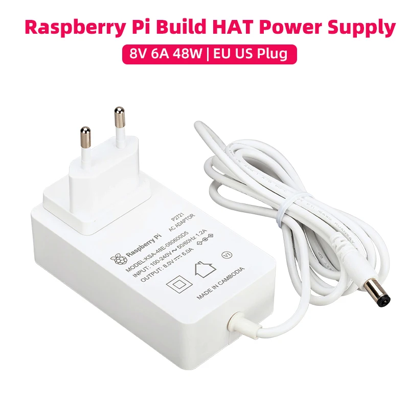 48W Raspberry Pi Build HAT Power Supply 8V 6A EU US Power Adapter with 1.5m 16AWG Cable LEGO-compatible