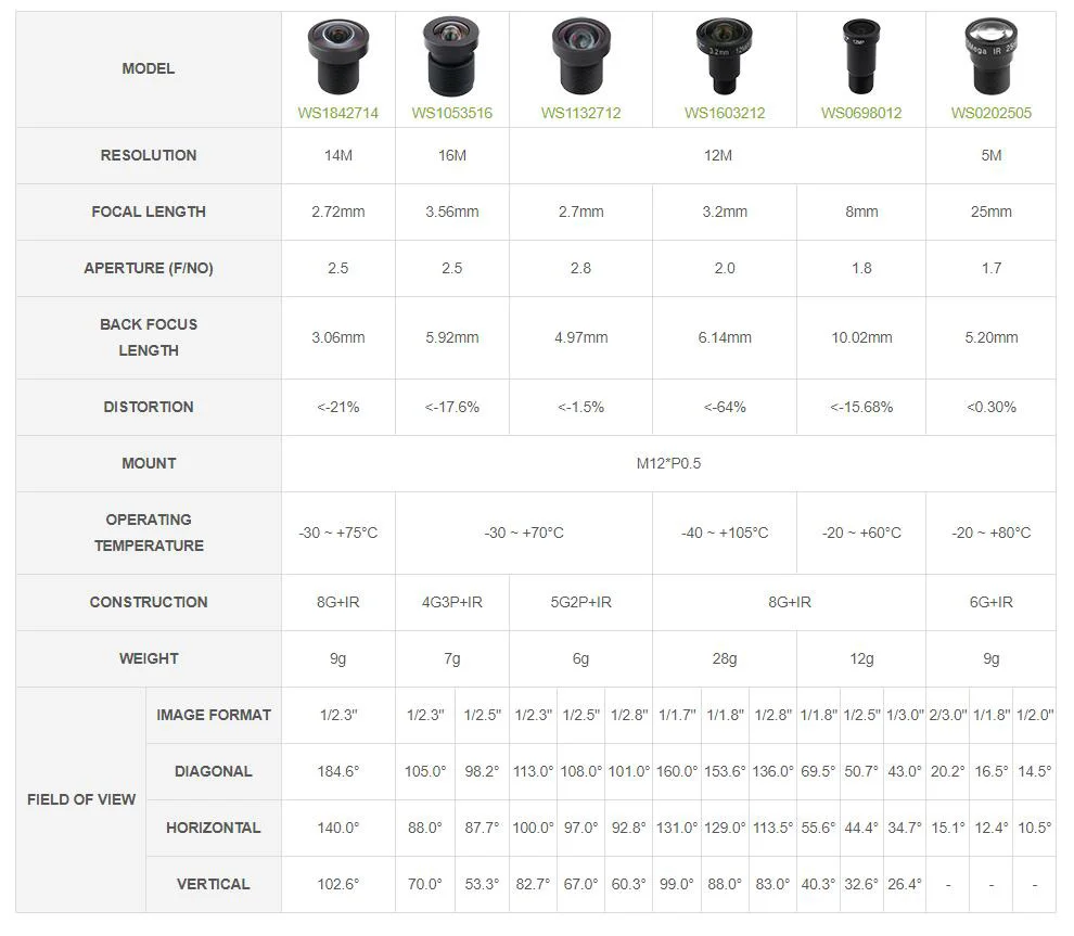 【Selección de lentes M12】