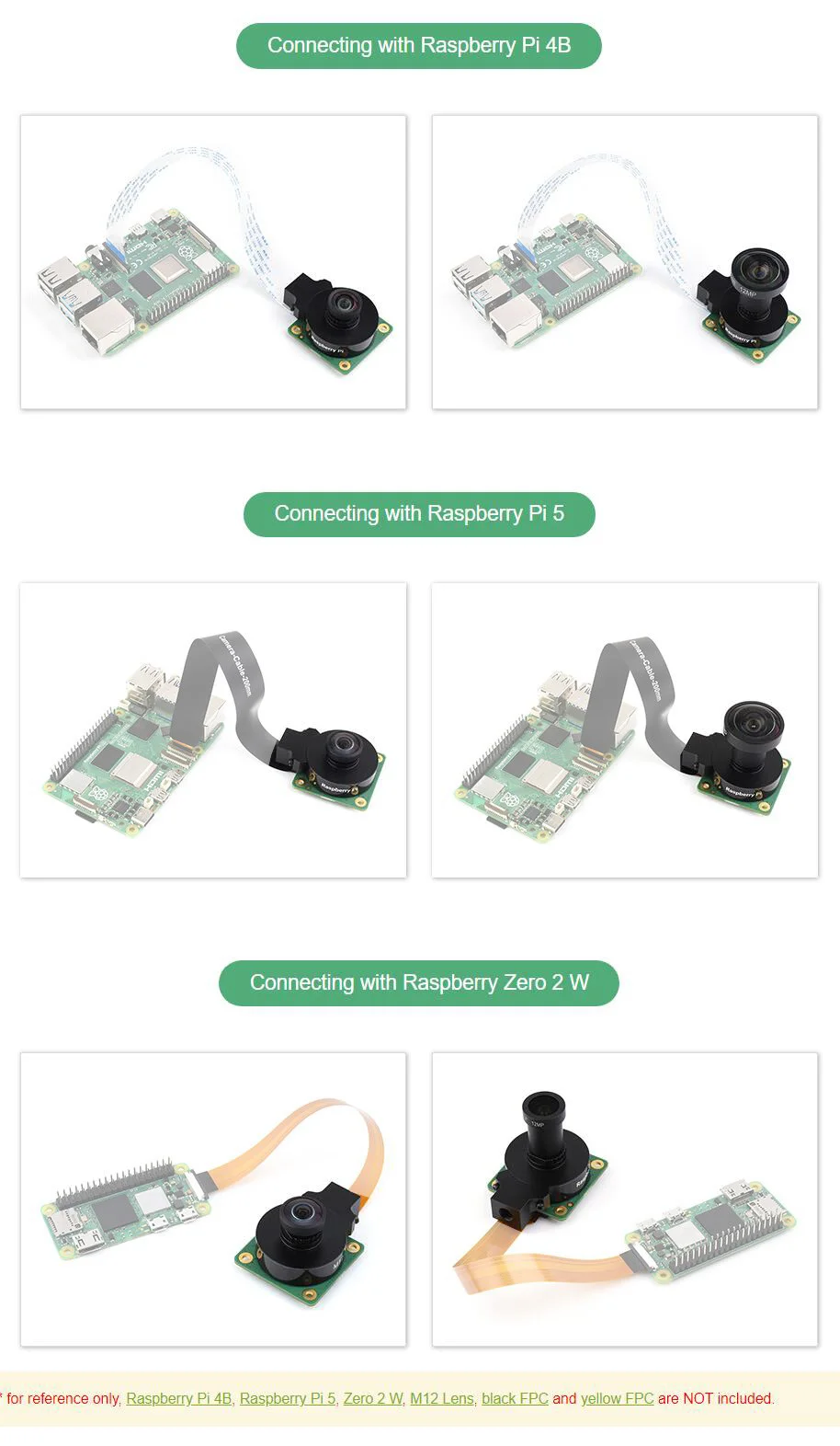 []Raspberry Pi 4B, Raspberry Pi 5, Zero 2 W, FPC negro y FPC amarillo NO están incluidos.