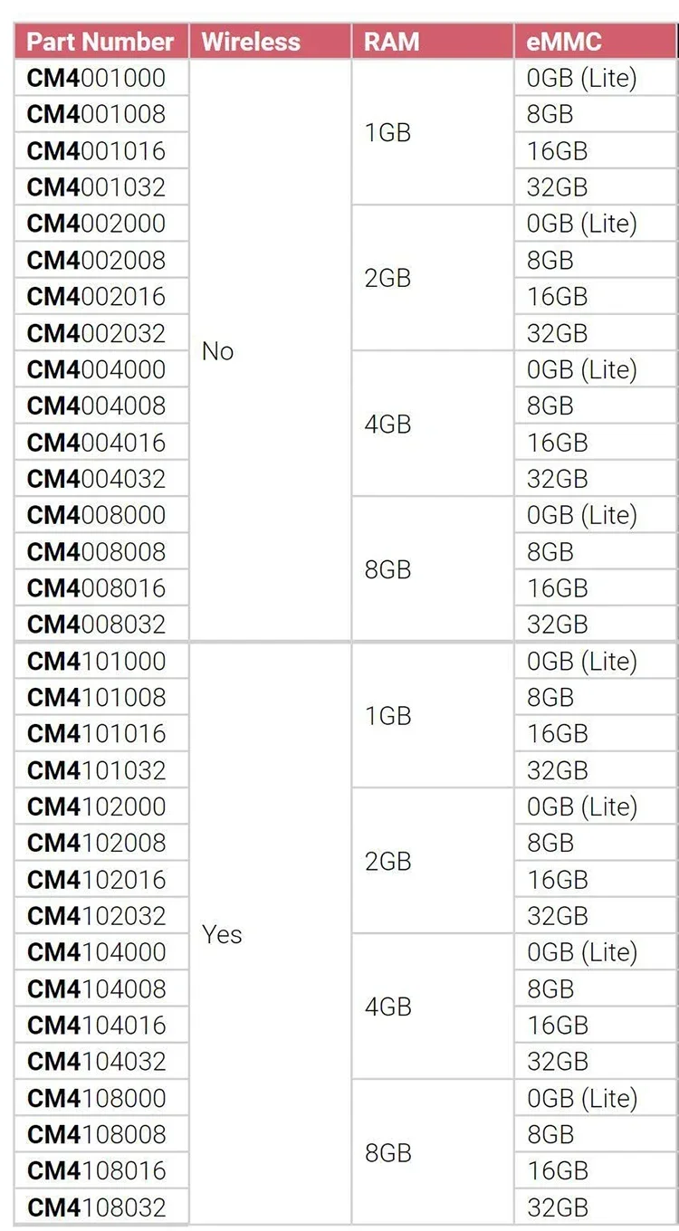 Módulo de computación Raspberry Pi 4 incorpora un procesador ARM Cortex-A72 de cuatro núcleos, salida de vídeo dual y una amplia selección de otras interfaces.Disponible en 32 variantes, con una gama de RAM y Flash eMMC opciones, y con o sin conectividad inalámbrica.