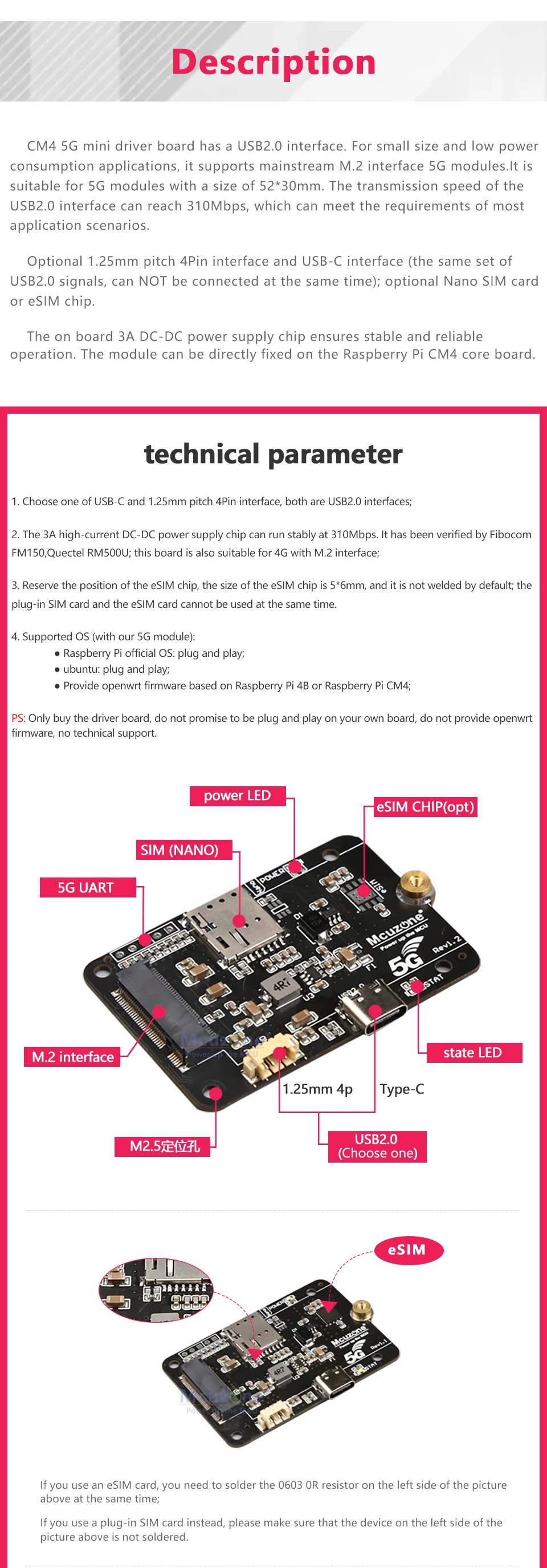 Comprar Raspberry Pi CM4 _ 5G LTE Mini módulo openwrt ubuntu sin controlador FM150 RM500U RM500Q SSH RPi 4B eSIM