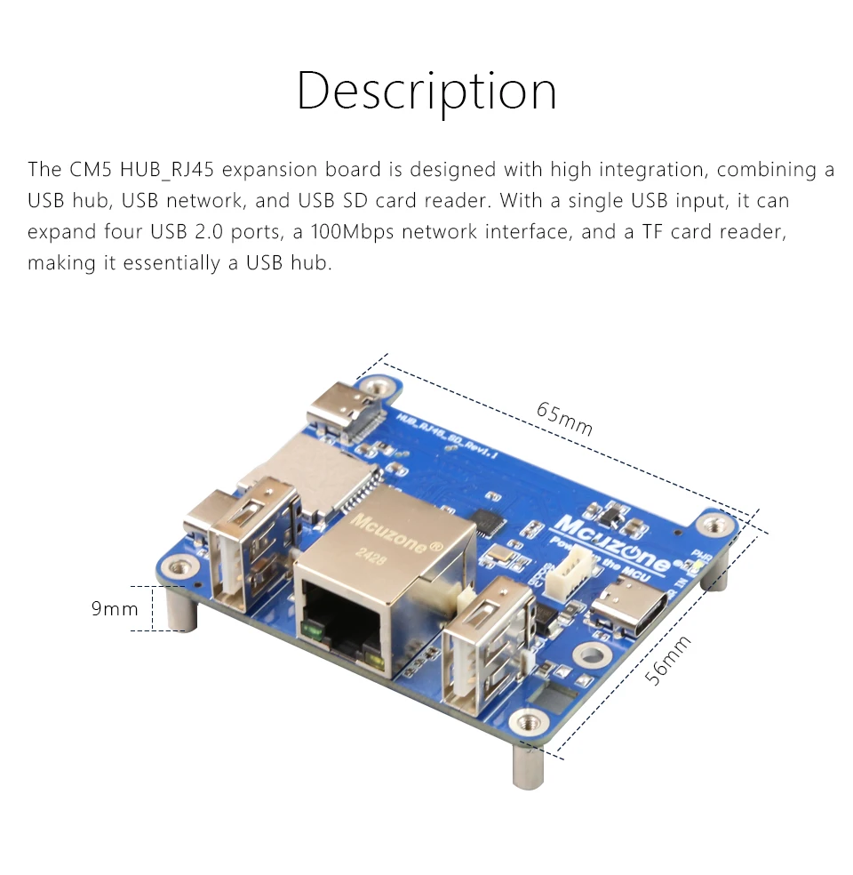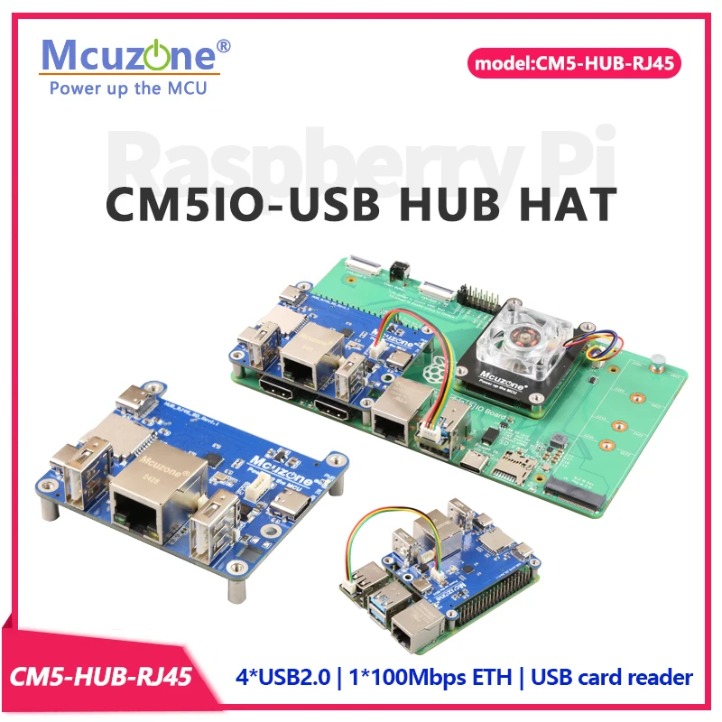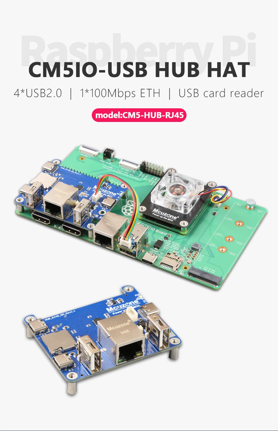 Comprar Raspberry Pi CM5 IO-USB HUB HAT, RJ45 100Mbps Ethernet, lector USB TF
