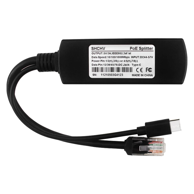 Divisor Gigabit PoE USB tipo C IEEE 802.3af 10/100/1000Mbps Alimentación a través de Ethernet para Raspberry Pi 4B/5