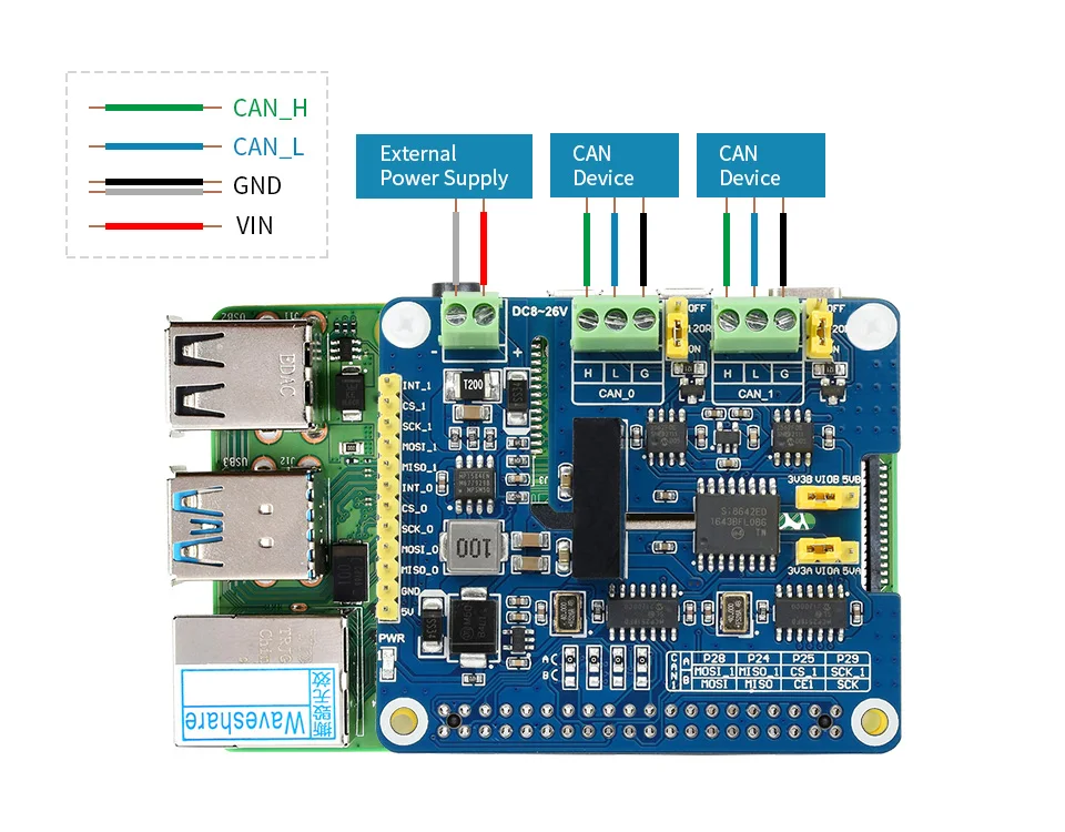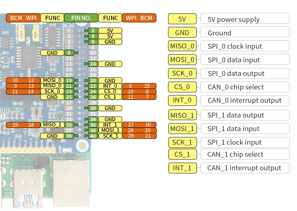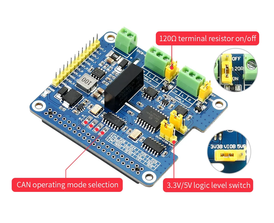 El Sombrero FD de 2 canaleses un HAT de expansión de bus CAN de 2 canales diseñado para Raspberry Pi, admite CAN FD (CAN con velocidad de datos flexible).Activará el bus CAN para su Raspberry Pi, no solo el protocolo CAN 2.0 original, sino también la extensión CAN FD, con mayor rendimiento de datos.