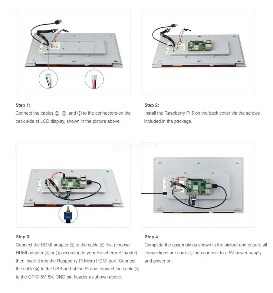 Prepare los accesorios como se muestra arriba, aquí tomamos como ejemplo Raspberry Pi 5.