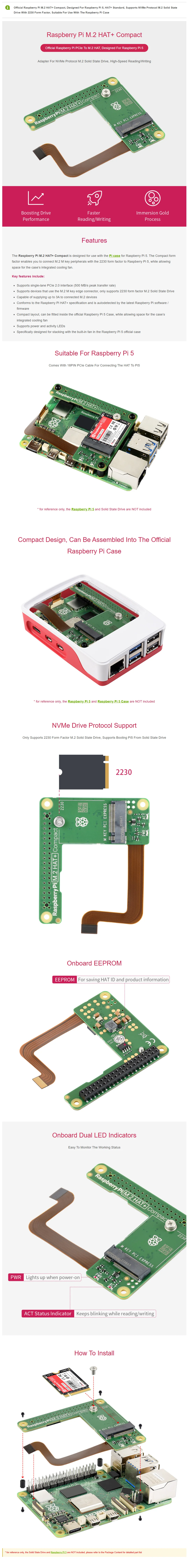 Raspberry Pi oficial M.2 HAT+: placa de expansión NVMe SSD para Raspberry Pi 5