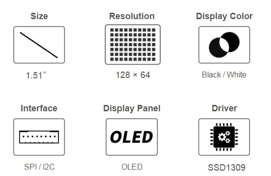 Comprar Raspberry Pi Pantalla azul OLED transparente de 1,51 pulgadas 128 × 64 interfaz SPI/I2C también para Arduino STM32