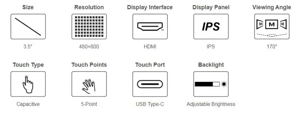 Pantalla LCD táctil capacitiva IPS de 3,5 pulgadas, 480 × 800, brillo ajustable. Compatible con Raspberry Pi y Jetson Nano, y también se puede utilizar como monitor de ordenador.